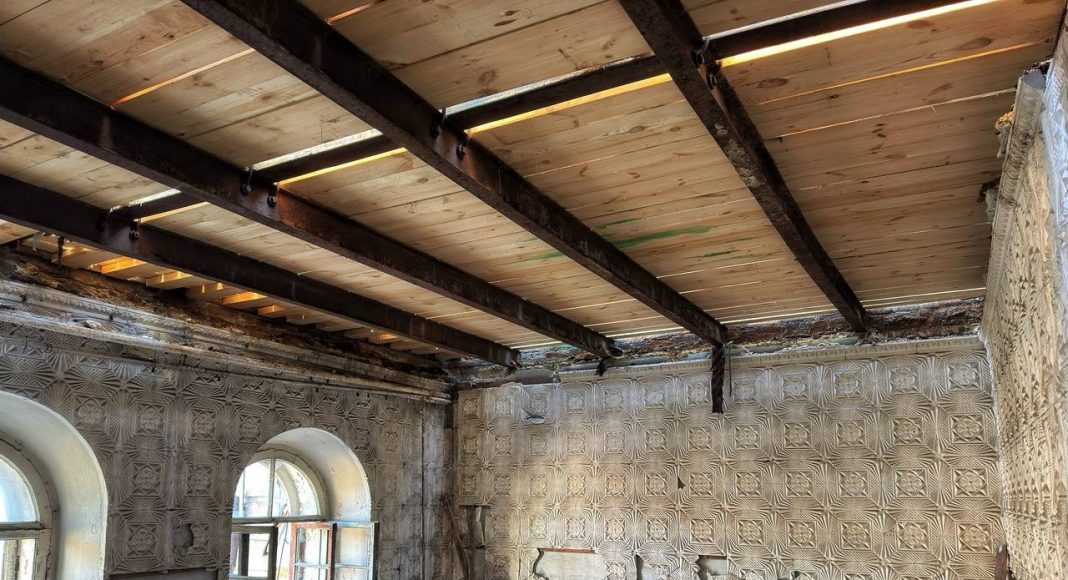 «На сегодняшний день работы ведутся согласно заключенному контракту с компанией ООО РК «Авангард», которая выиграла аукцион. Ведутся стропильные, реставрационные работы по крыше, по установке новой обрешетки, монтируется пароизоляция, которая необходима для данного объекта.