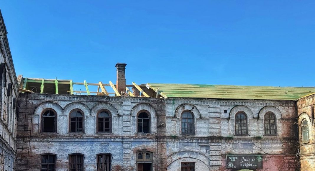 Бригада рабочих продолжает трудиться на кровле дома самого крупного и успешного купца прошлого. Подобный ремонт в прямом смысле можно назвать ремонтом века и шансом на спасение культурно-исторической ценности нашего города.