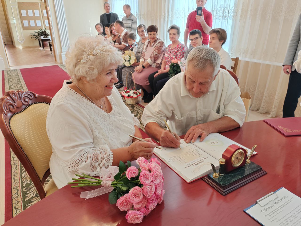31 октября в Каменском загсе чествовали Наталью и Вениамина Ельчиных — супружескую пару, отметившую 50-летие со дня бракосочетания.