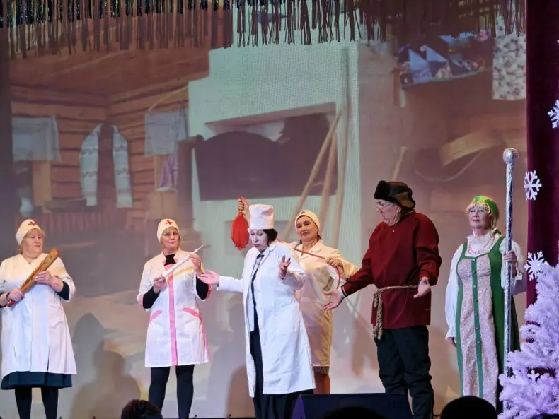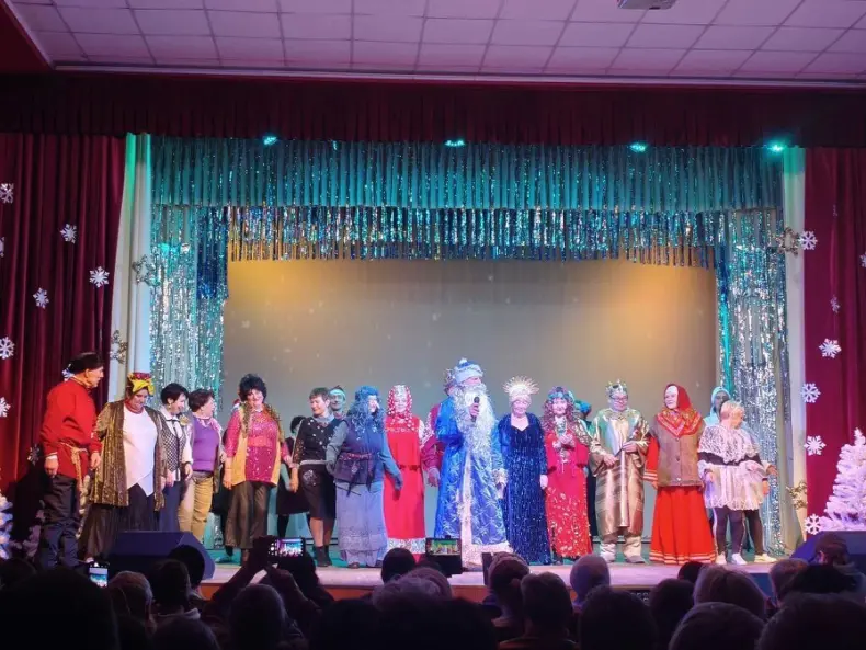 При полном аншлаге в районном дворце культуры прошло потрясающее представление юмористического спектакля «Морозко» на новый лад, которое подготовили артисты театральной группы «Хризантема» (режиссер Маслова Н.Н) местного отделения союза пенсионеров России г. Камень-на-Оби.