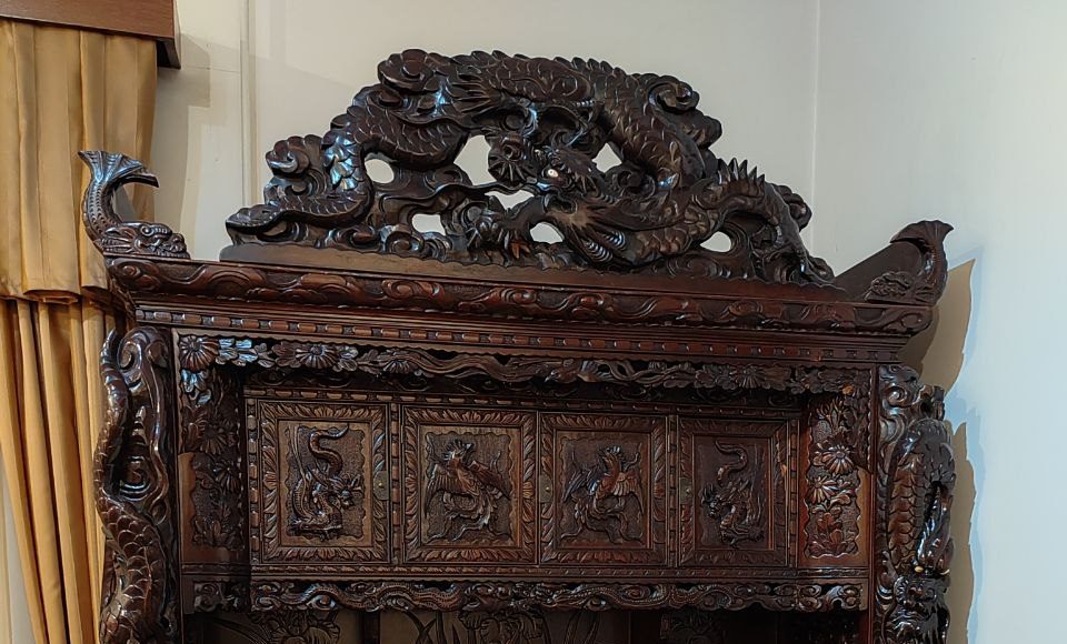 Этот бильярд стоит по сей день в одном из залов. Также в резиденции полностью сохранилось внутреннее убранство времен жизни императора. Мебель, картины, книжный шкаф с личной библиотекой Негоша, секретер с его оригинальными рукописями (в том числе написанной здесь поэмой «Горный венец) и прочие атрибуты жизни.