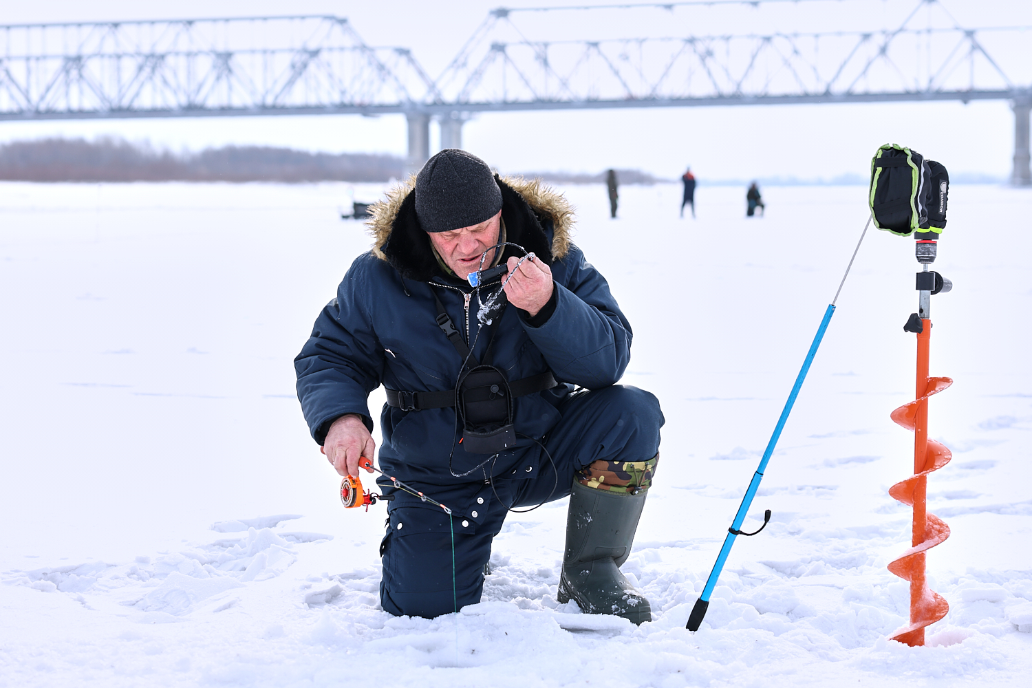 Площадку под состязания отвели рядом, огородив квадратный участок Оби примерно сто на сто метров, у спуска к реке по ул. Титова. Белоснежная гладь в этот день пестрела от рыбаков. В этом году за звание лучшего рыболова вышли побороться 37 мужчин и три женщины, доказавшие, что любовь к рыбалке не знает ни возраста, ни границ.