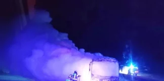 Рейсовый автобус сгорел ночью на трассе в Алтайском крае