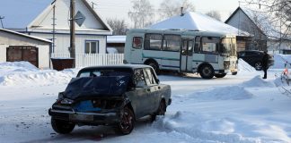 В Камне-на-Оби автомобиль «Жигули» на скорости врезался в пассажирский автобус. Видео