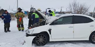 В Камне-на-Оби автомобиль «Жигули» на скорости врезался в пассажирский автобус. Видео