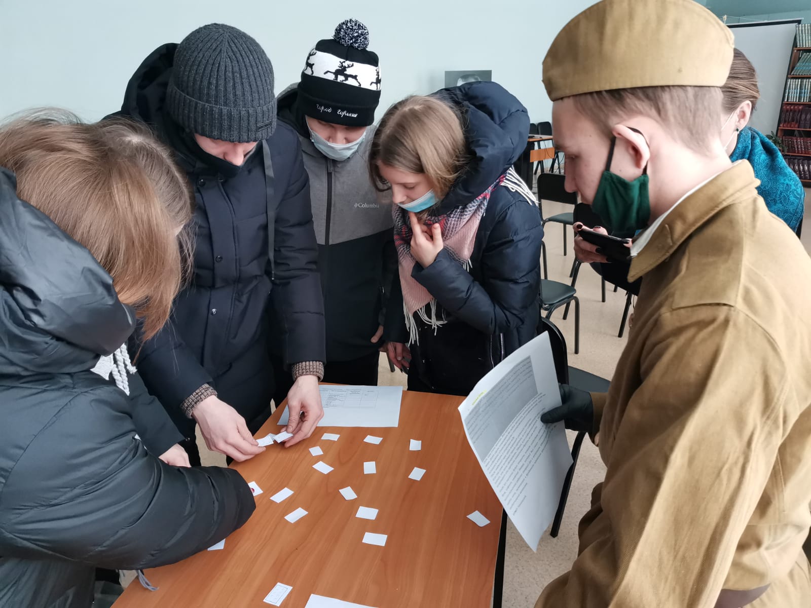 Получив маршрутные листы, школьники отправились на площадки, расположенные в РДК, музее, библиотеке и кинотеатре, где их ждали: расшифровка последнего послания из штаба, работа с азбукой Морзе, викторина «Верно – неверно» (вопросы по истории), соотношение фотографий с информацией о конкретном историческом событии, определение суточной граммовки хлеба для рабочего, служащего, детей и иждивенцев.