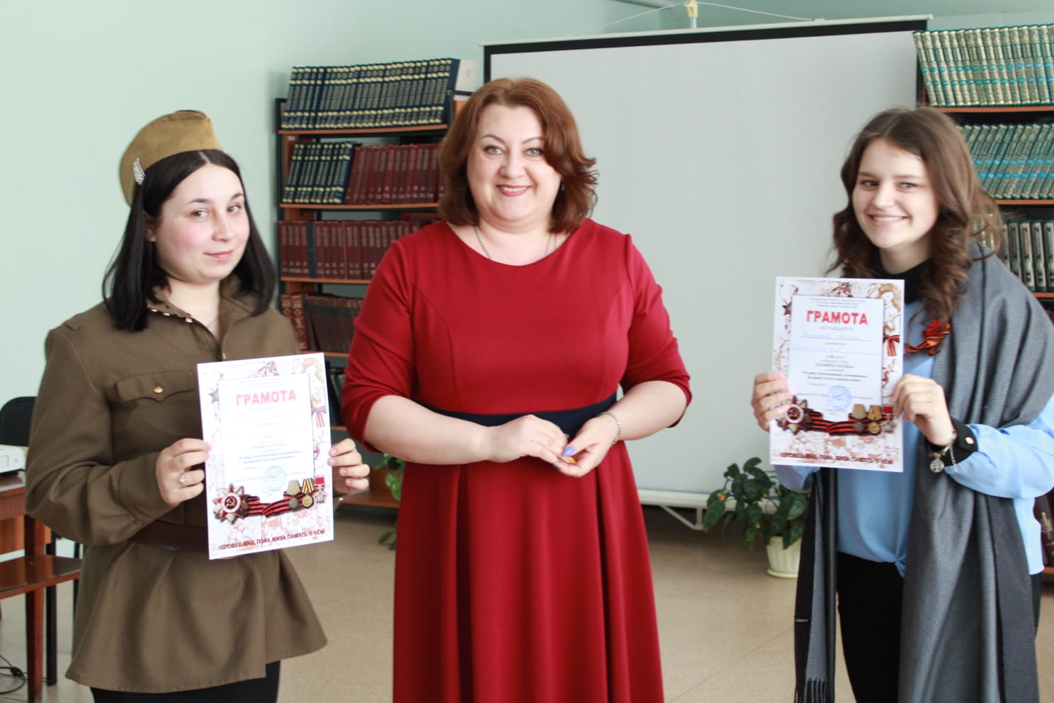Отметим, что в зале были и те, кто пожелал прочитать стихи вне конкурса. Своим присутствием, а затем и голосом, собравшихся порадовала Нина Кузьмина, учитель математики, ветеран педагогического труда. Для гостей сотрудники библиотеки провели викторину на знание событий, фактов и дат, связанных с Великой Отечественной войной.