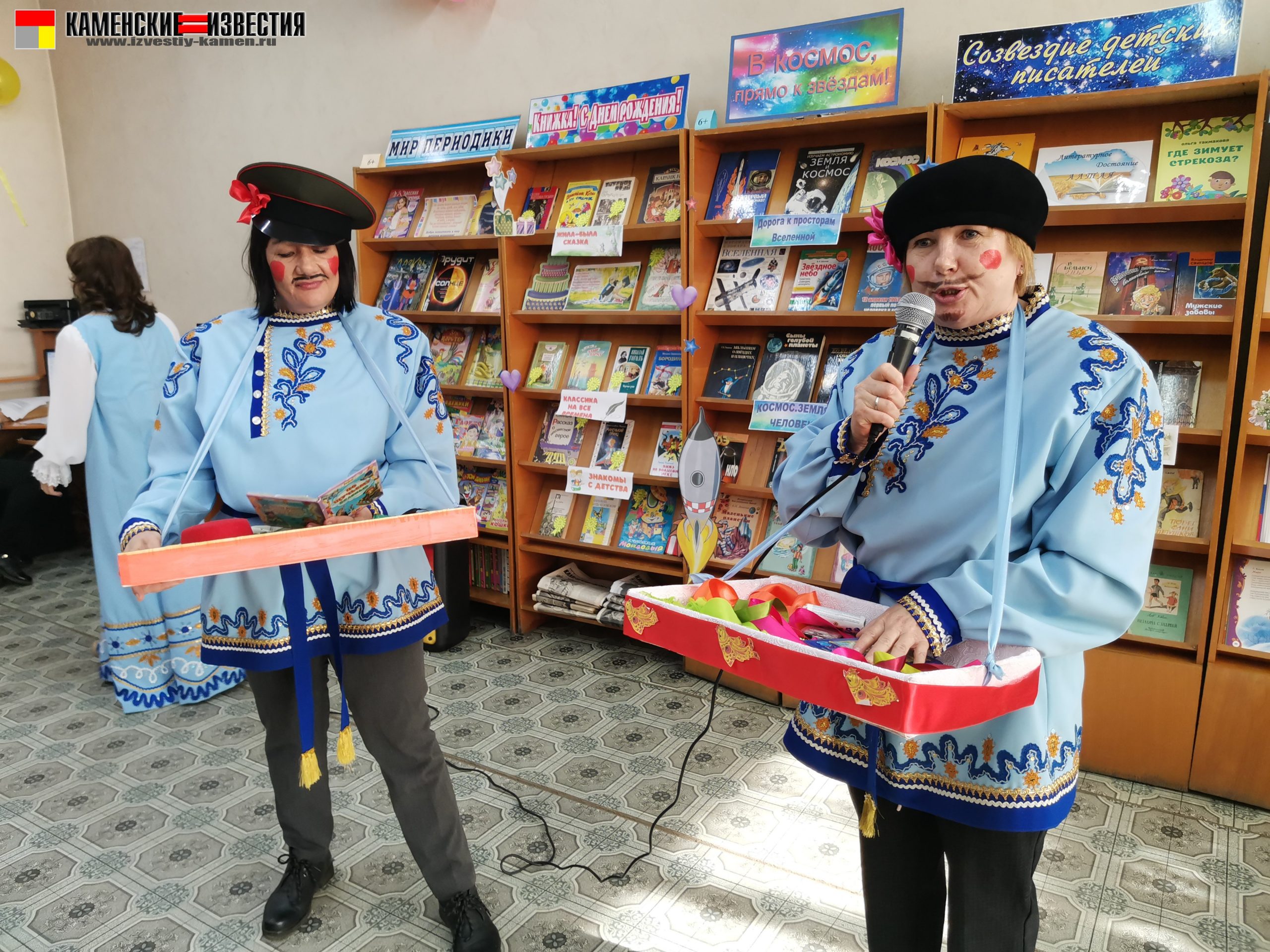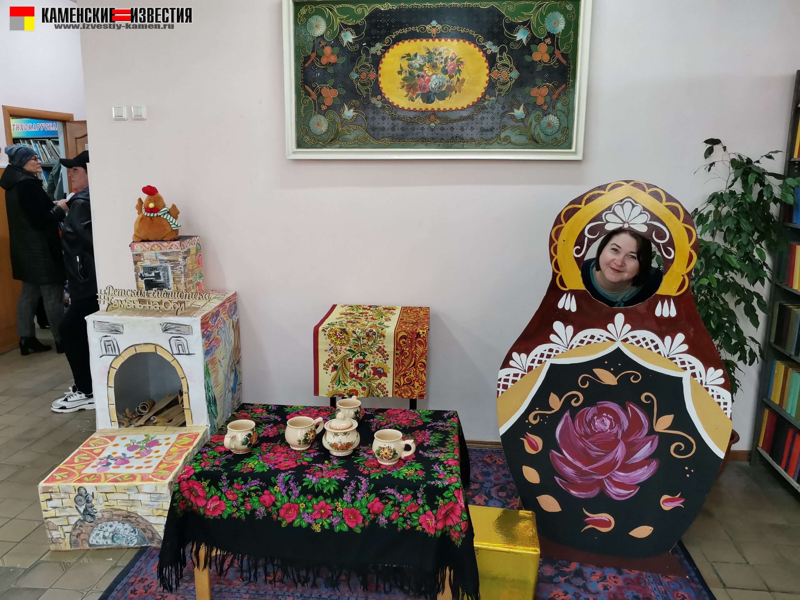 Гостей у порога библиотеки встречали ряженые и провожали в читальный зал. Представление началось со звуков русской народной музыки, под которую на импровизированную сцену вышла ведущая.