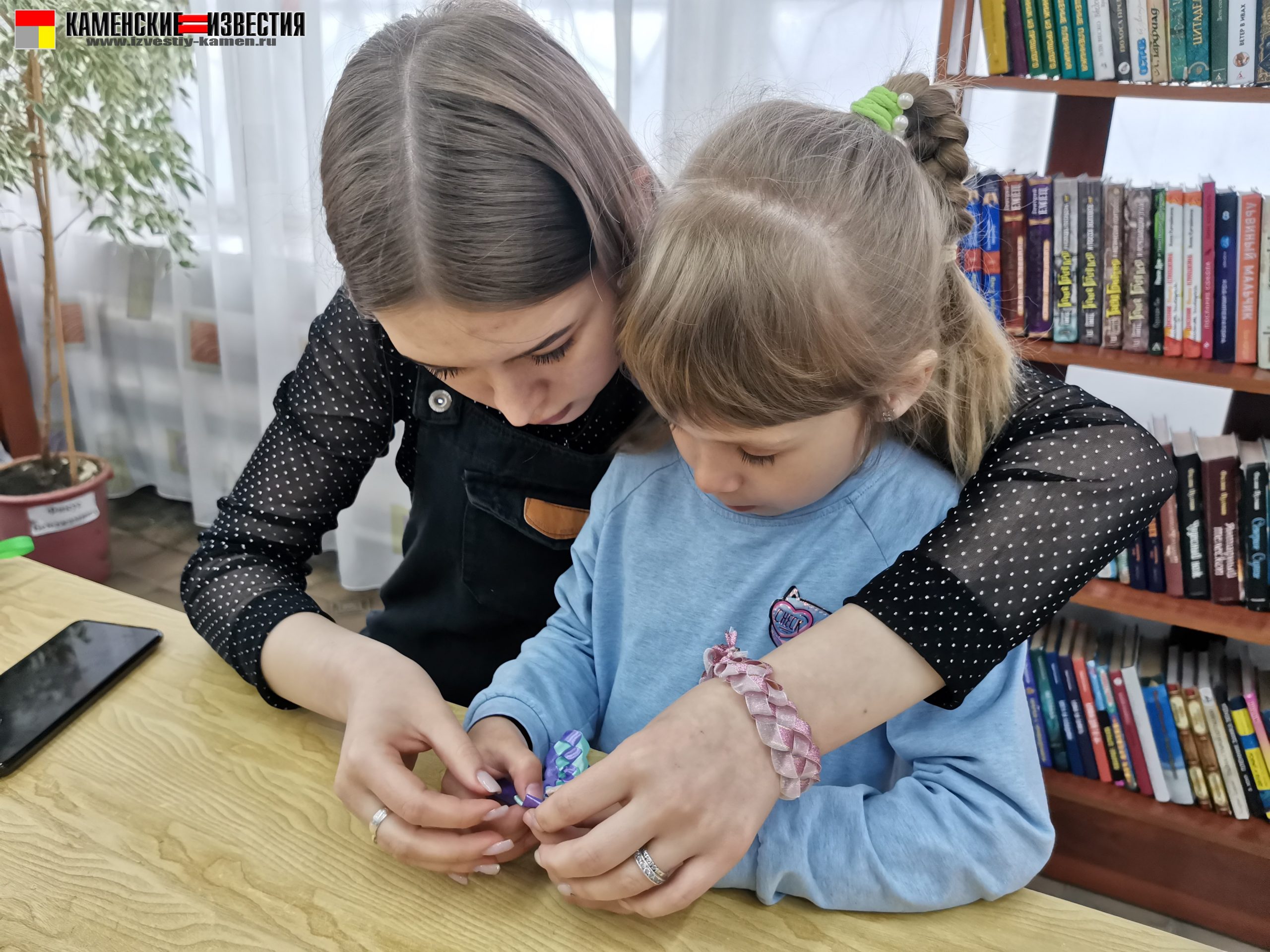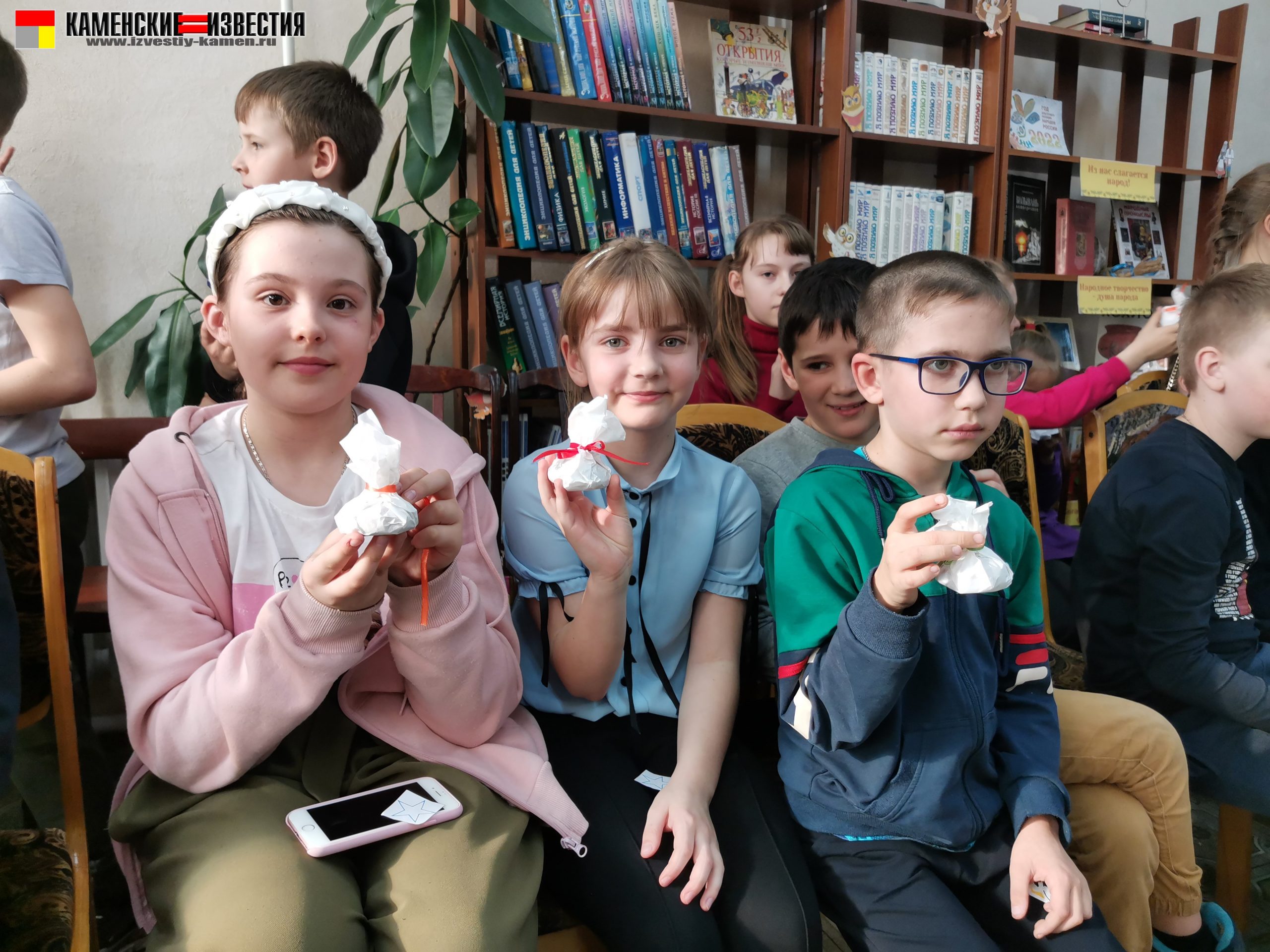 Кстати, всех ребят, которые выступали на сцене тоже не оставили без подарков. Им вручили по плитке шоколада. Главные призы за наибольшее количество жетонов – пригласительные билеты в кинотеатр «Звезда». Вторая часть праздника была организована в фойе библиотеки. Здесь ребятам предложили принять участие в мастер-классе по изготовлению браслета из шелковых лент. Также студенты Каменского педагогического колледжа под руководством педагога Ольги Зыкун учили ребят рисовать цветы в старинной графической технике эбру. Не обошлось в этот раз и без любимого детьми боди-арта. На лицах мальчиков и девочек появлялись скорпионы, пауки, лепестки, звезды и солнышки. Наведя на лице гуашевую красоту, дети могли сделать атмосферные фотографии в обустроенной по типу русской избы фотозоне.
