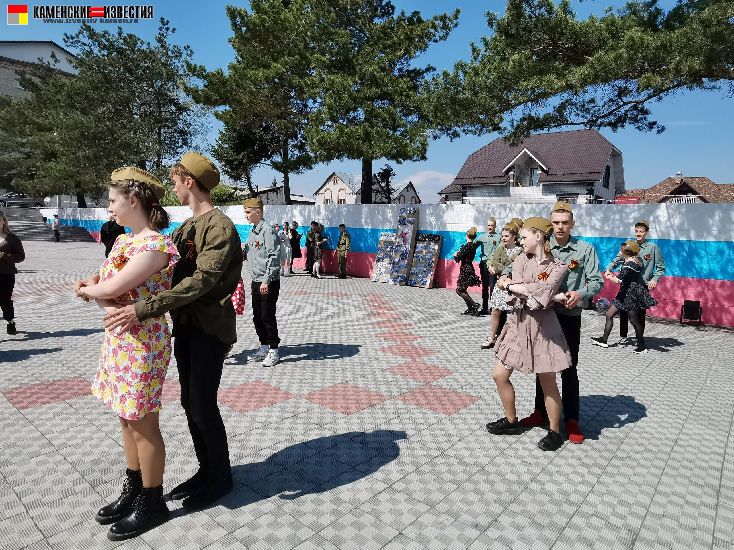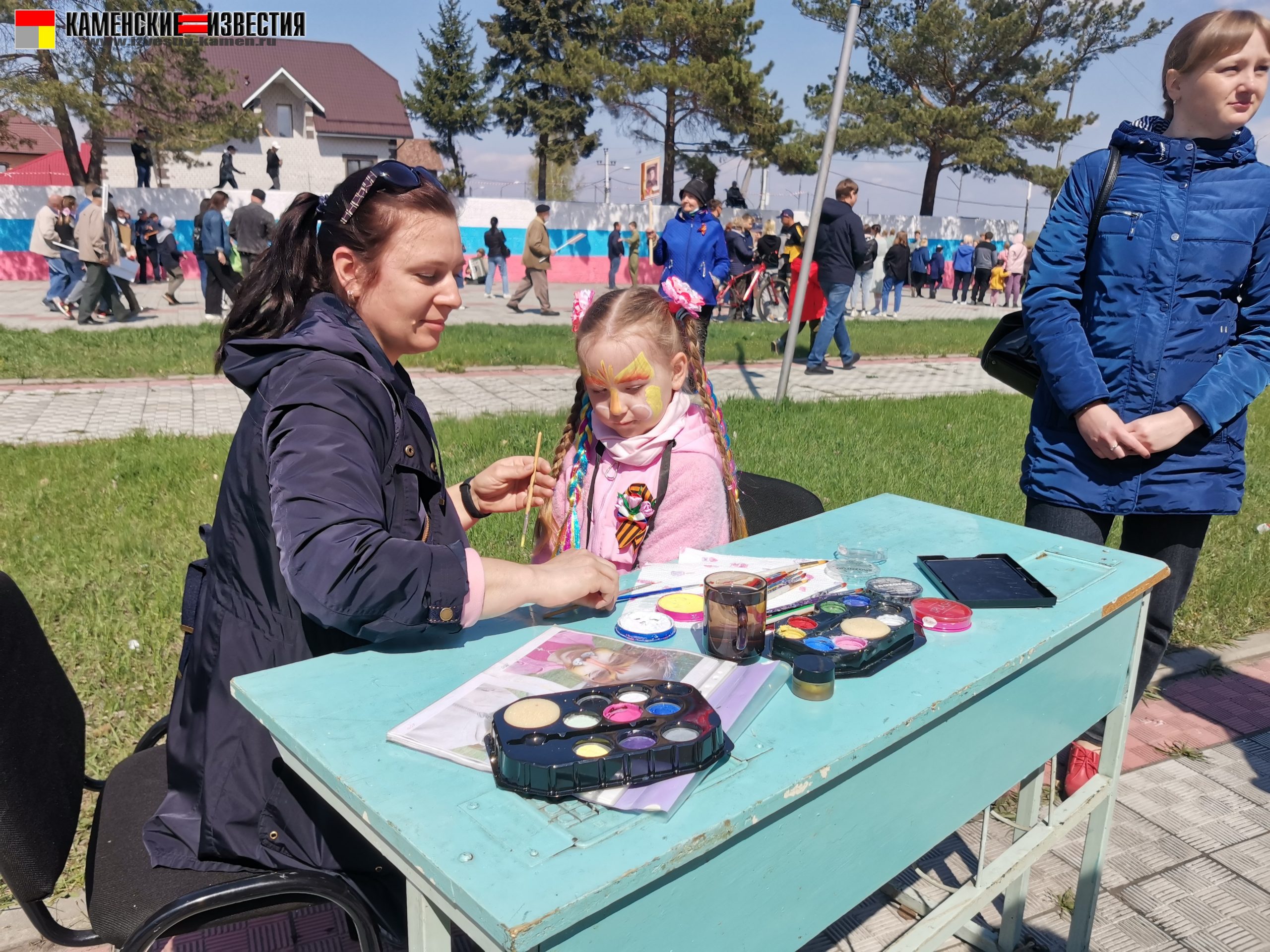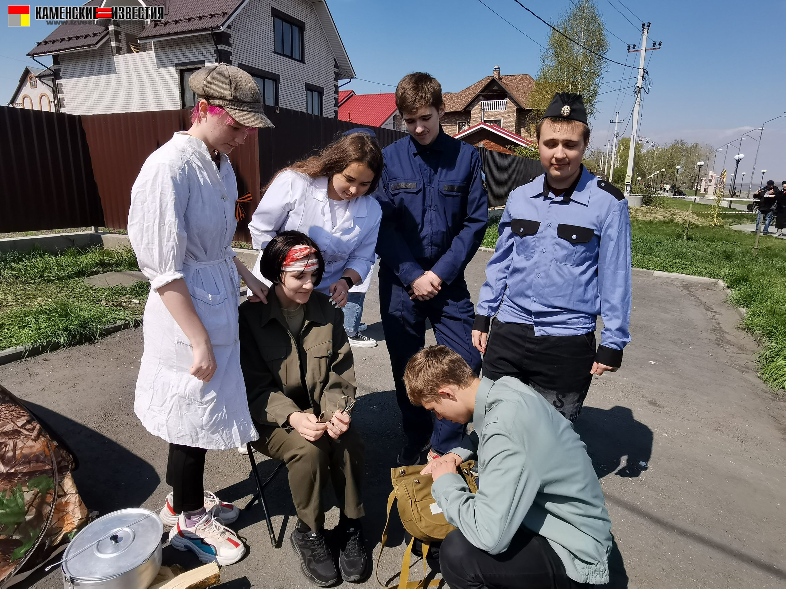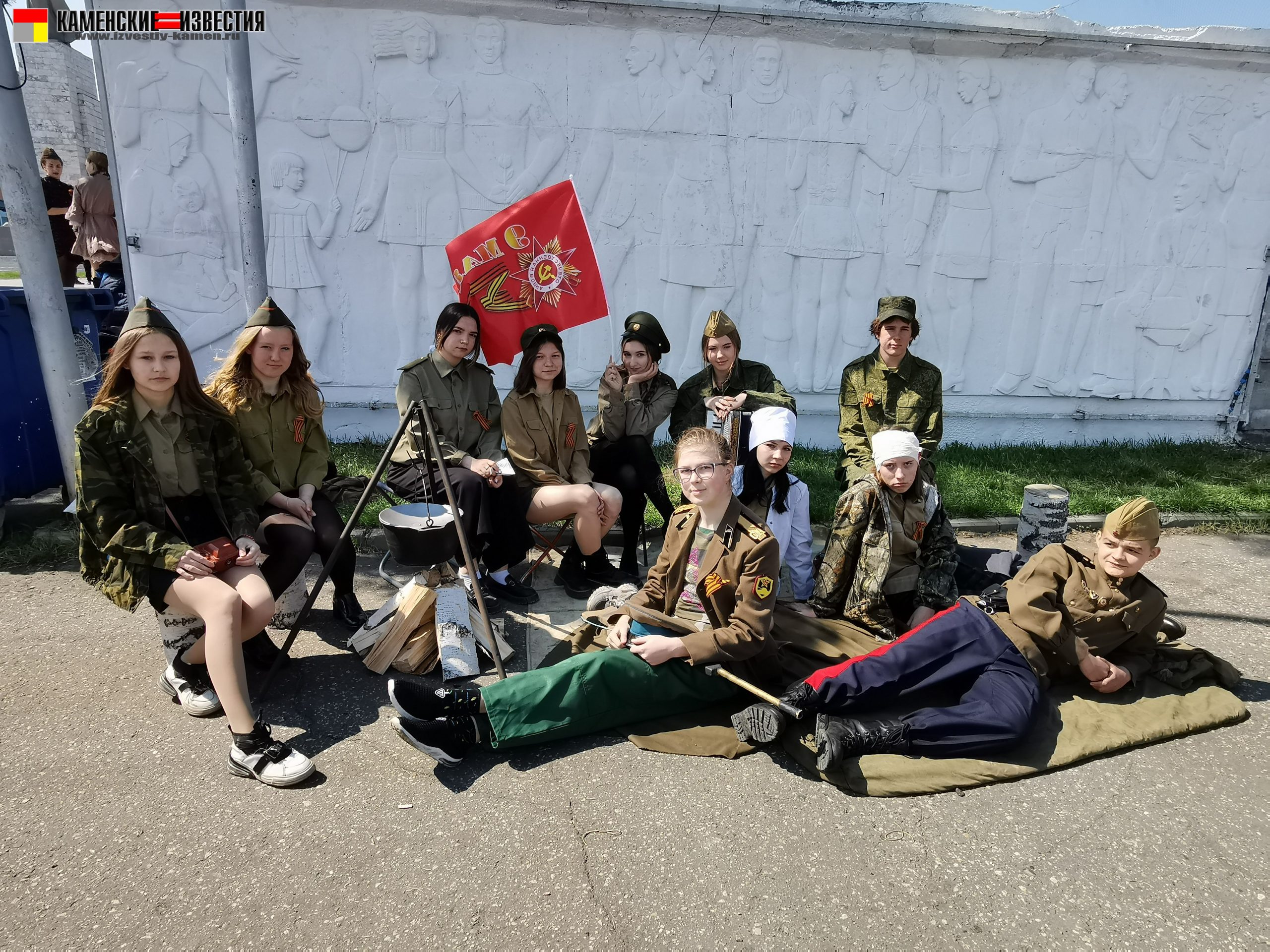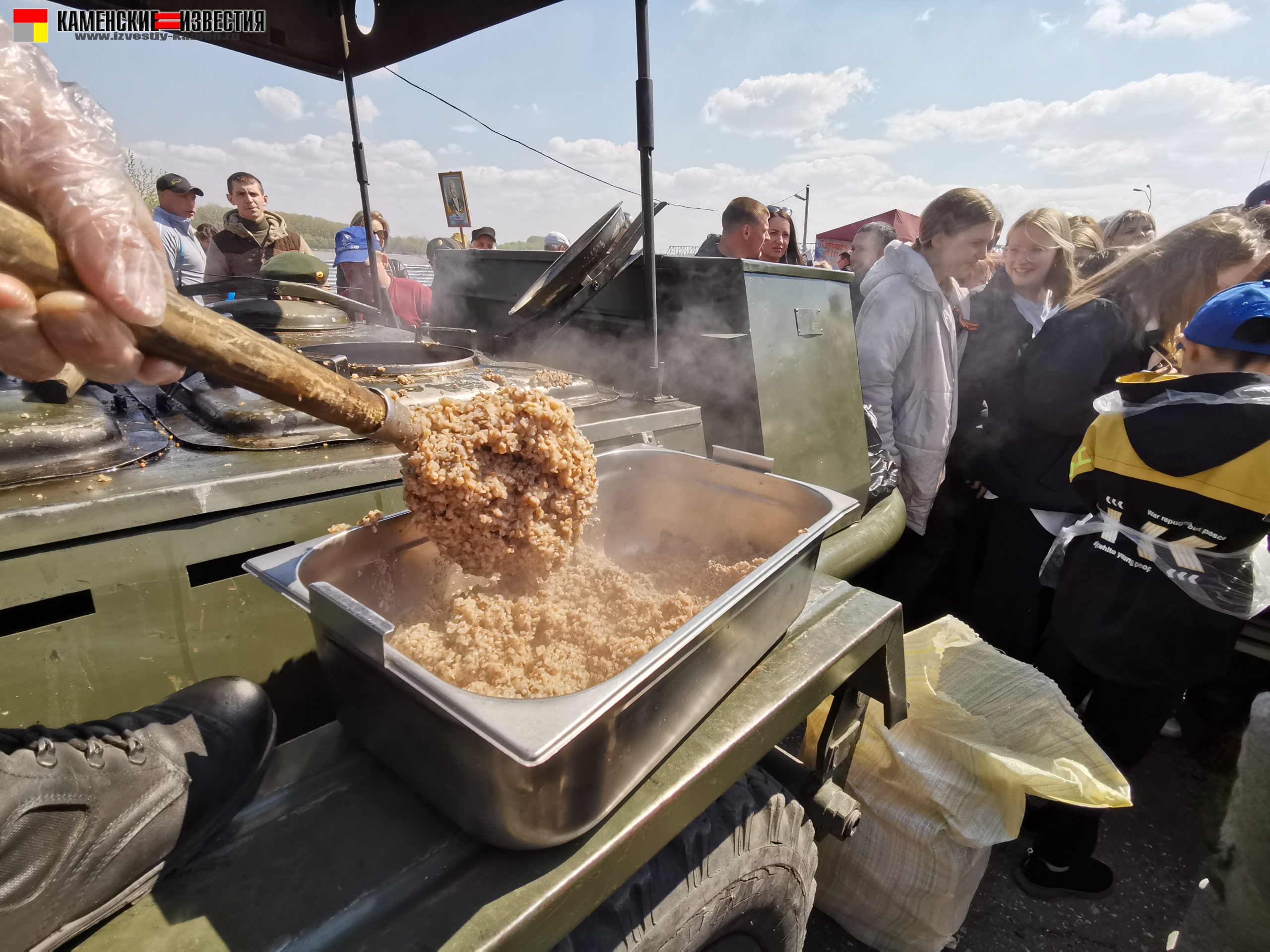 Пока на мемориале Славы проходил Парад, на набережной Оби военные готовили гречневую кашу и чай. Кстати, военная полевая кухня стала уже неотъемлемой частью Дня Победы в Камне-на-Оби. Горожане всегда с удовольствием пробуют гречу с кусочком хлеба и выстаивают за угощением огромные очереди. Говорят, что в этом году она была очень вкусная, с тушенкой и грибами. Кроме полевой каши, для зрителей работники культуры подготовили концертную программу «Споем вместе о победе», которая началась с того момента, как на ступенях набережной появились первые участники «Бессмертного полка». Здесь же было организовано несколько площадок с театрализацией. Одна группа молодежи играла роль полевого госпиталя и перевязывала раненых, другие танцевали вальс, третьи отдыхали после боя под звуки аккордеона, а четвертая группа работала с военными документами. На празднике скучно не было даже маленьким детям. Для них работал боди-арт, можно было посетить городской парк культуры и полакомиться сладкой ватой.