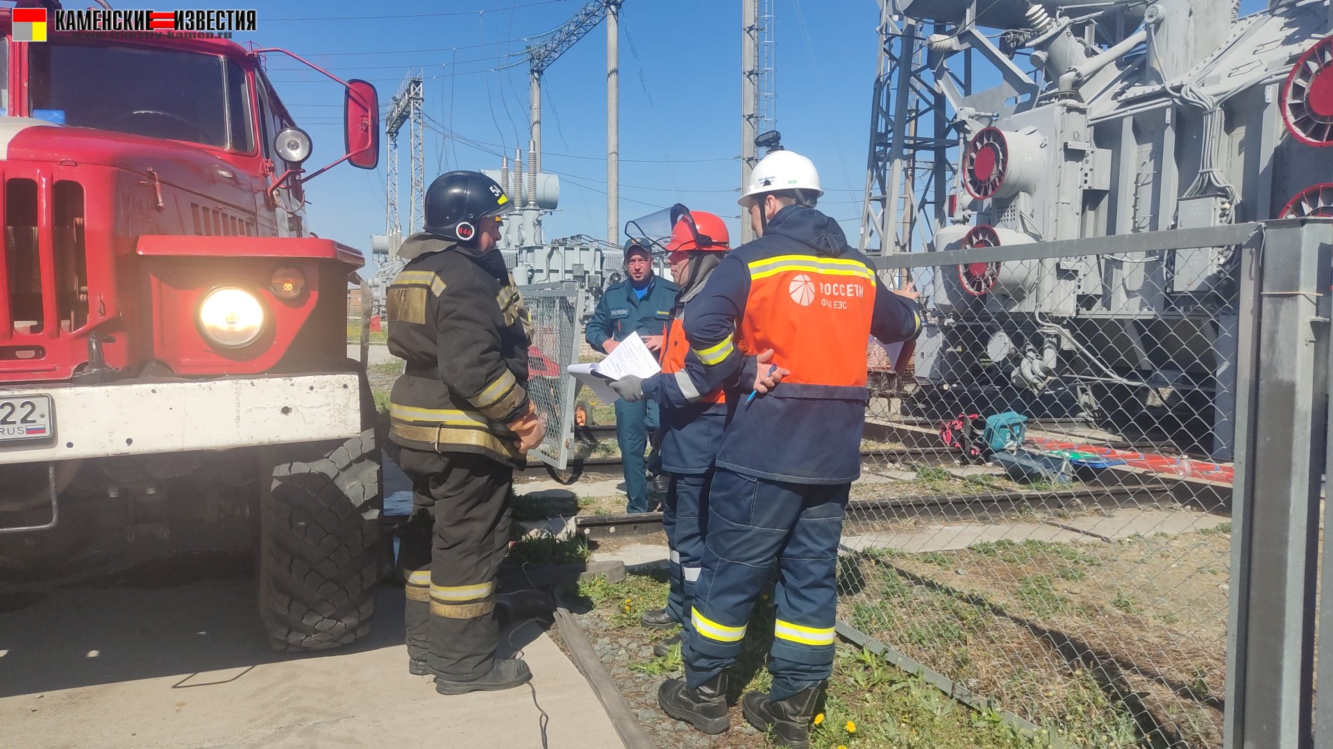 Сегодня проводилась контрольная, противопожарная, противоаварийная тренировка с персоналом МЧС на подстанции 220кВ «Светлое». Как рассказал начальник подстанции Иван Чигинцев, по легенде было условное возгорание 64-х тонн масла в автотрансформаторе АТ-1. Контрольная тренировка прошла на «Хорошо».
