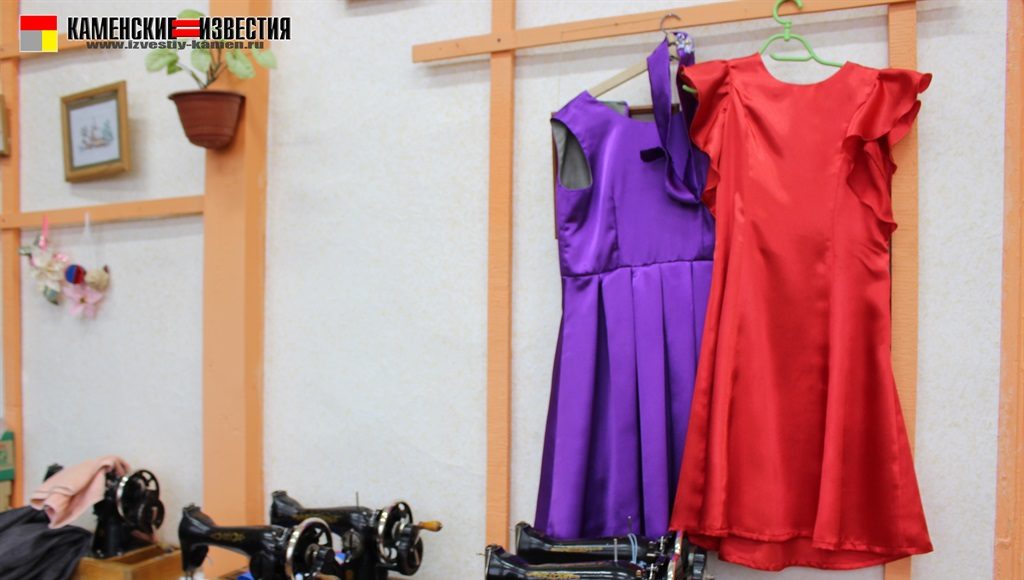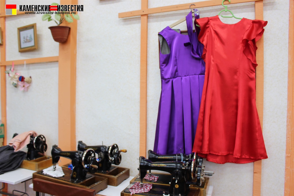 А вот и светлый кабинет с пластиковыми окнами и стройными рядами швейных машинок. На стенах висят платья, сшитые девочками специально для дефиле. Это вотчина Людмилы Украинской, работает она в ДК, как и Ирина Дворских, на 0,5 ставки и выбить эти «половинки» руководителю удалось не так давно. Несмотря на это, все костюмы и наряды в Доме культуре сшиты Людмилой Семеновной – их накопилась уже целая гардеробная.