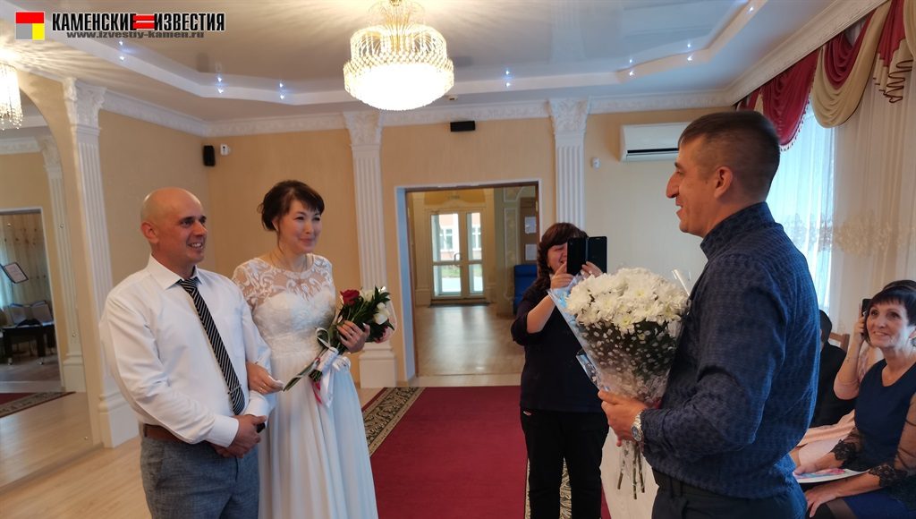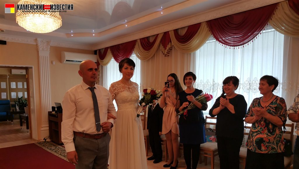 После непродолжительной встречи юбиляров и корреспондента в комнате молодоженов супругов Леоновых пригласили в зал бракосочетаний, где под бурные аплодисменты они произнесли свои заветные «Да» на вопрос регистратора – согласны ли они по-прежнему окружать вниманием и заботой любимого человека, защищать и беречь свою любовь. Поставив подписи в Книге юбиляров и обменявшись кольцами, Алексей пригласил Яну на свадебный танец. Также Леоновым было вручено памятное свидетельство о двадцатилетии совместной жизни, затем супруги принимали поздравления от родных и близких. Мероприятие закончилось небольшой фотосессией.