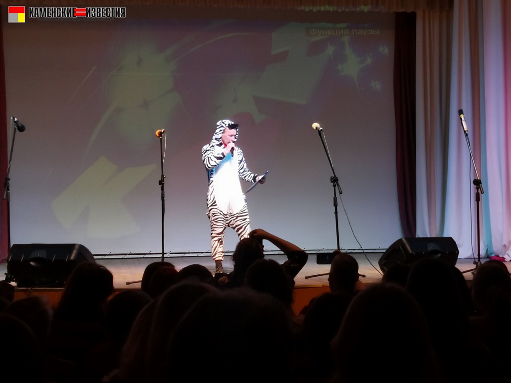 Ведущий из команды МЭС «Высокое напряжение» Илья Никулин дебютировал в качестве ведущего. Из-за этого весь вечер над ним шутила Ирина Фоломкина, капитан команды «ПедСОВет». Она в свое время тоже занимала этот высокий пост и была участницей студенческой команды педагогического колледжа.