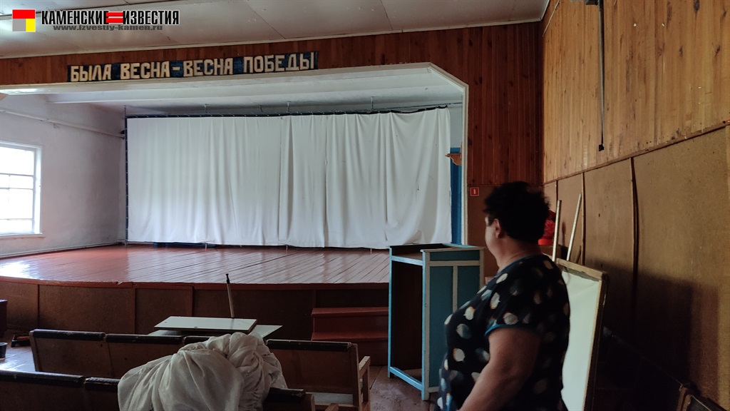 В самый разгар летнего ремонта попали — в здании пахло свежей краской и известью — в порядок приводили помещения рабочие. Ну как рабочие — три женщины мыли, скоблили и красили. Это не городской ДК, где строительные бригады нанимают. Здесь залы десятилетиями не видят ремонта, а если не сделаешь его своими руками, так еще не один год все простоит.