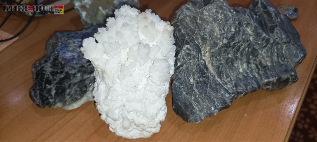 — А это арагонит, — показал Павел белый камень, внешне похожий на морской коралл, — в народе называют каменный коралл. Его копьевидные кристаллы при попадании света отдают стеклянным блеском. Нашел его под Новосибирском все в тех же карьерах.