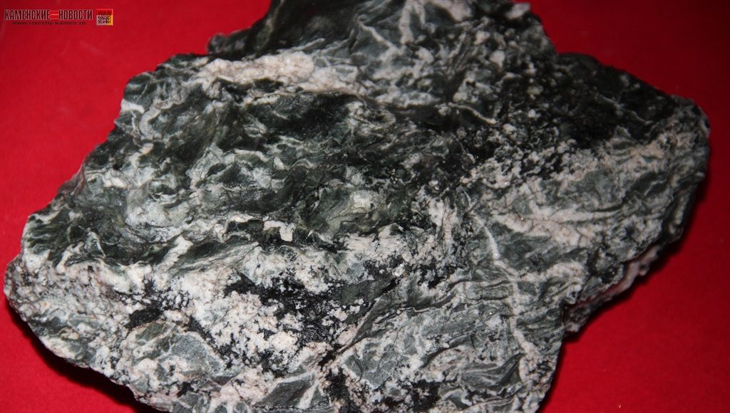Другой минерал, за счет оригинальных разводов по всей поверхности напоминающий окрас змеиной шкурки, получил название змеевик. Один из популярных минералов в нашем регионе, возможно и наиболее красивый.