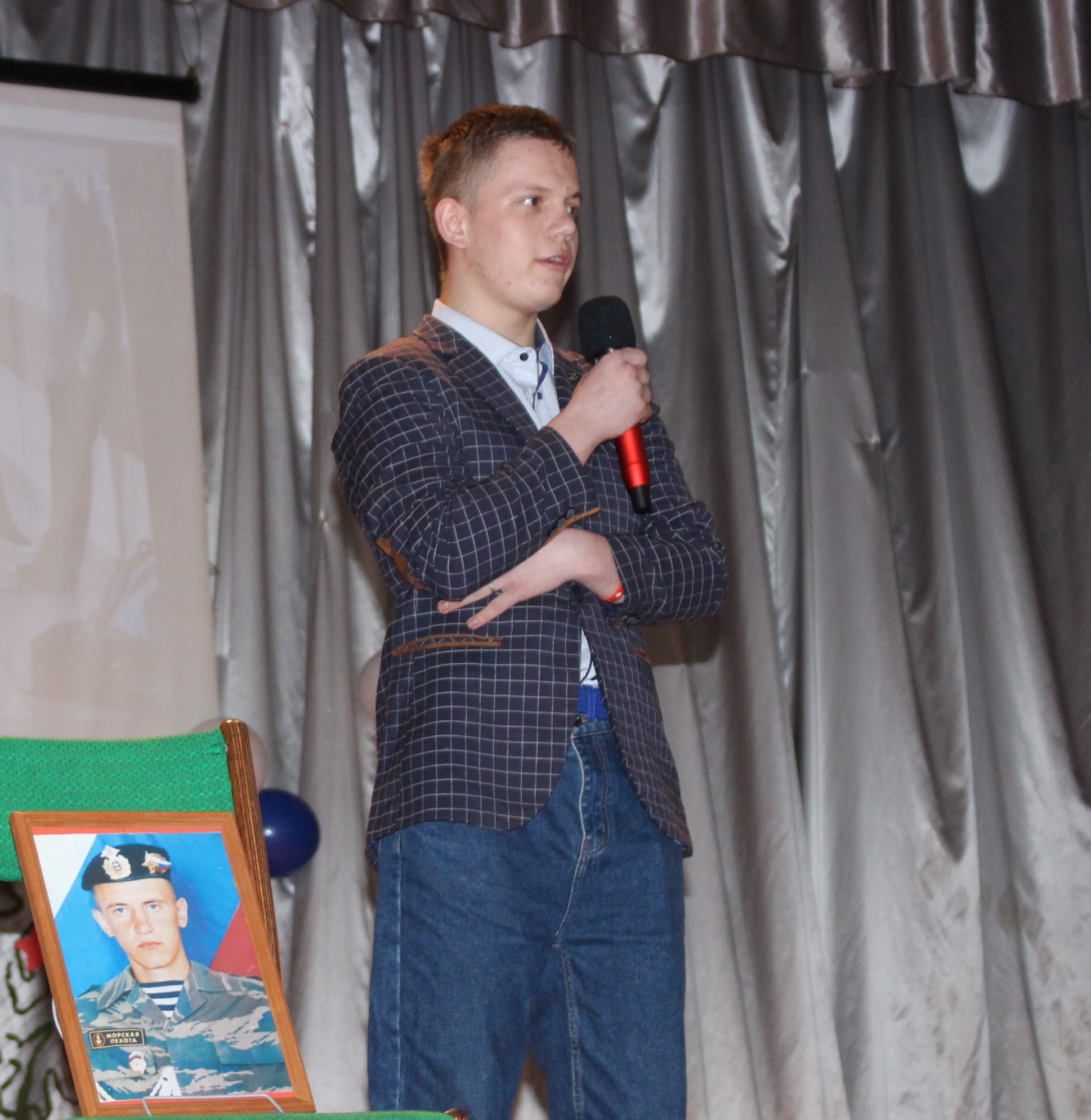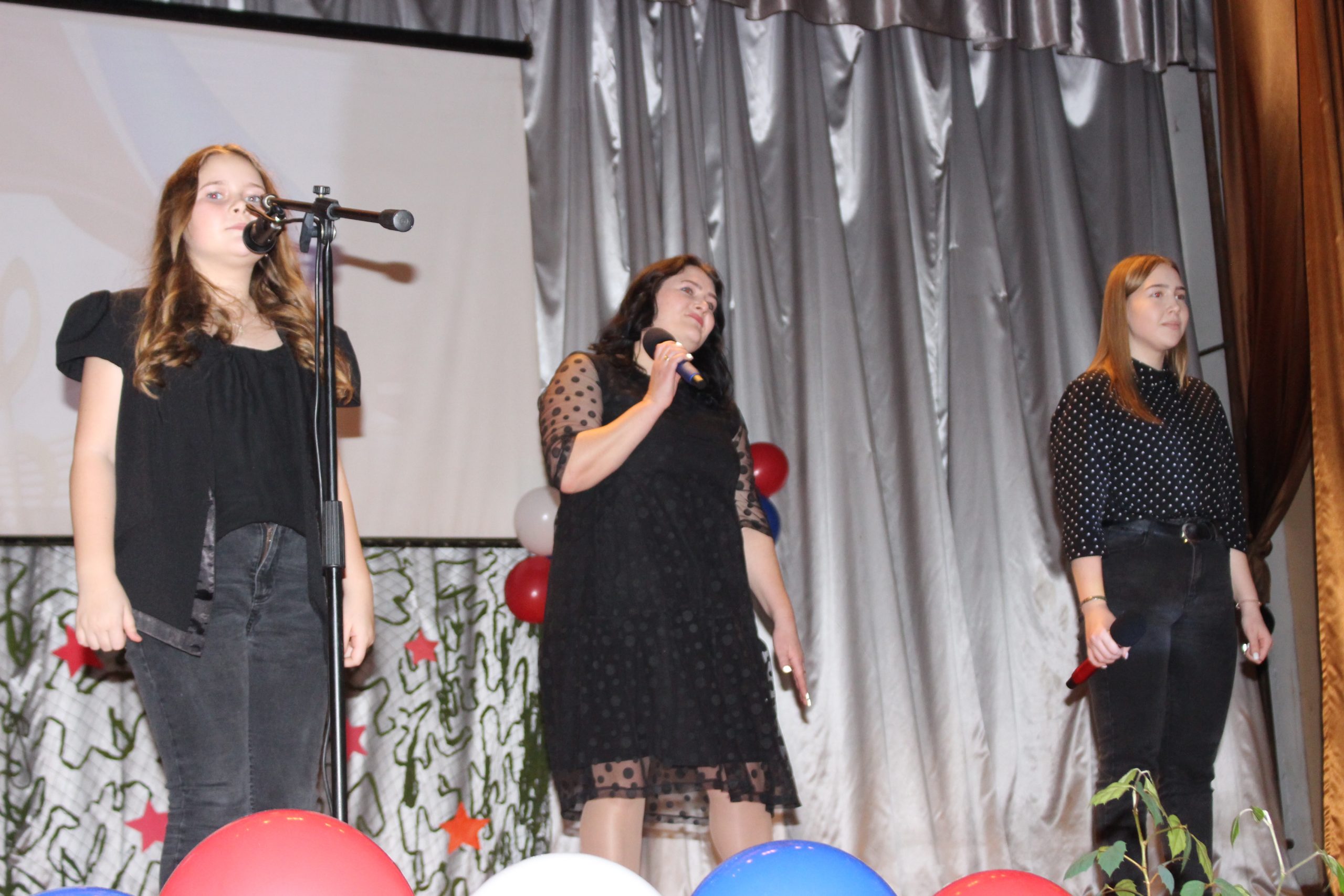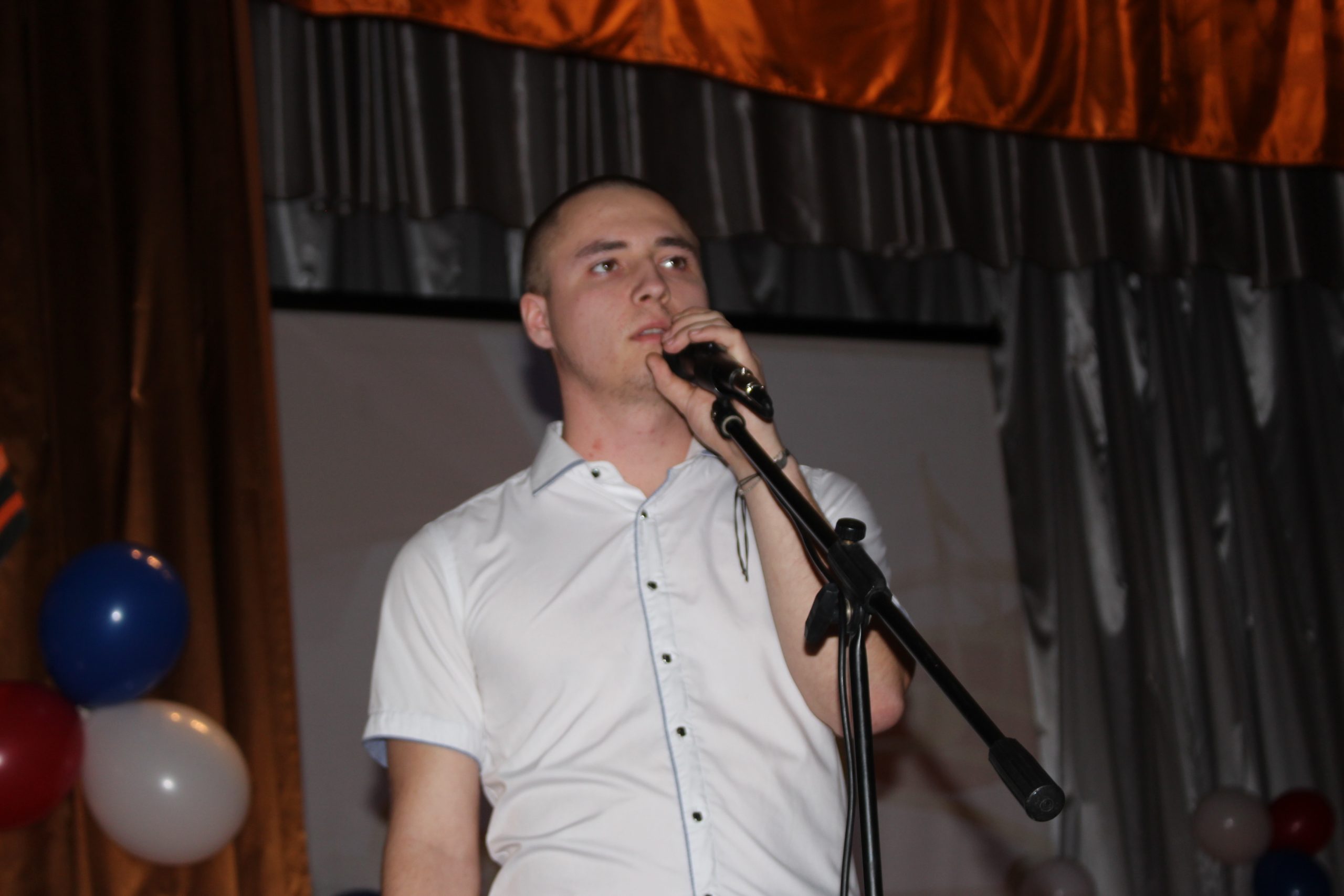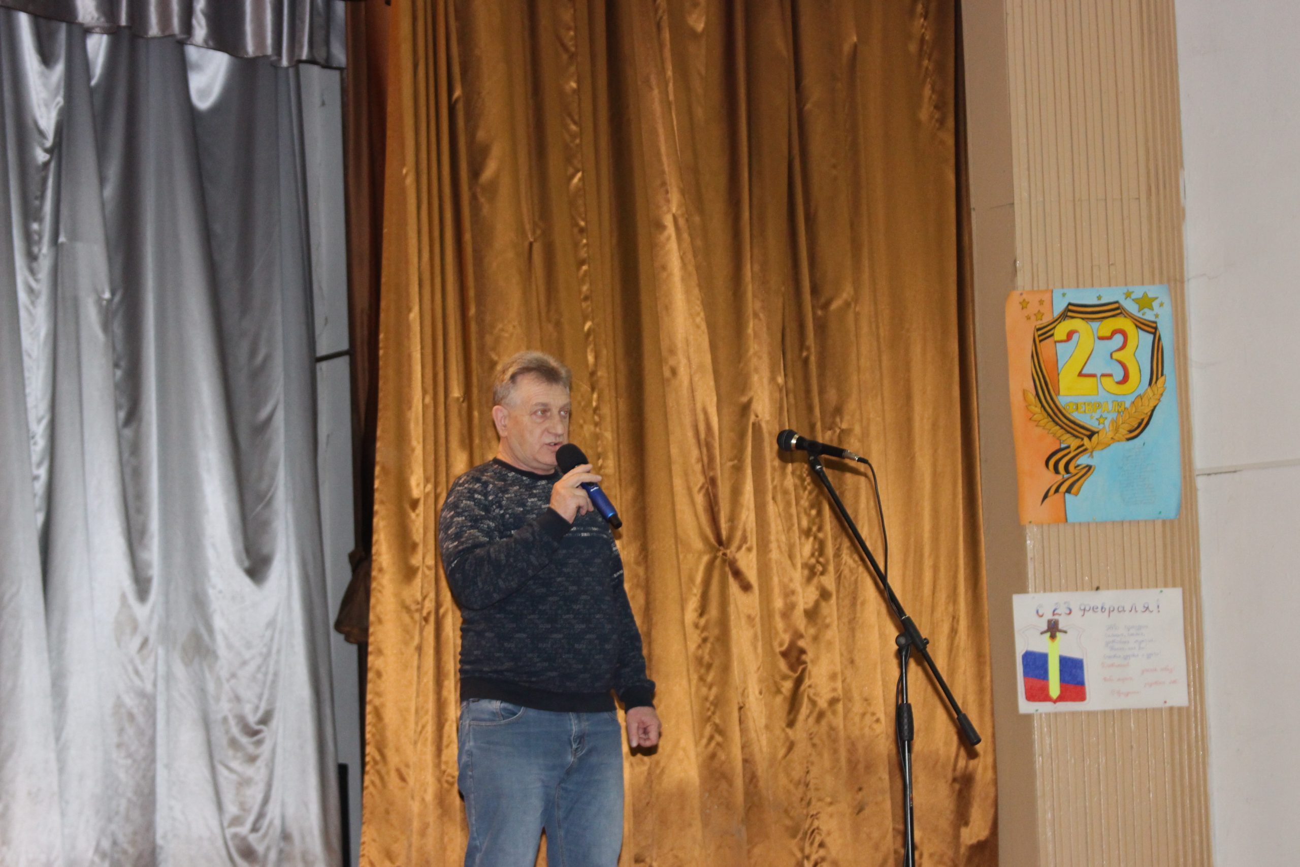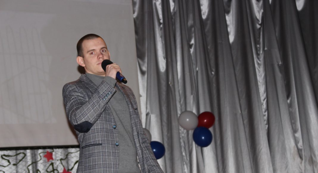Хочется отметить, что в актовом зале не было свободного места. Прибывавших к началу концерта зрителей размещали на вновь и вновь принесенных стульях и лавках. Шум и гам в помещении прекратился, когда зазвучал гимн Российской Федерации, на сцену торжественно был вынесен флаг России. Ребята из военно-патриотического объединения «Афганец» своим ярким выступлением начали конкурс.