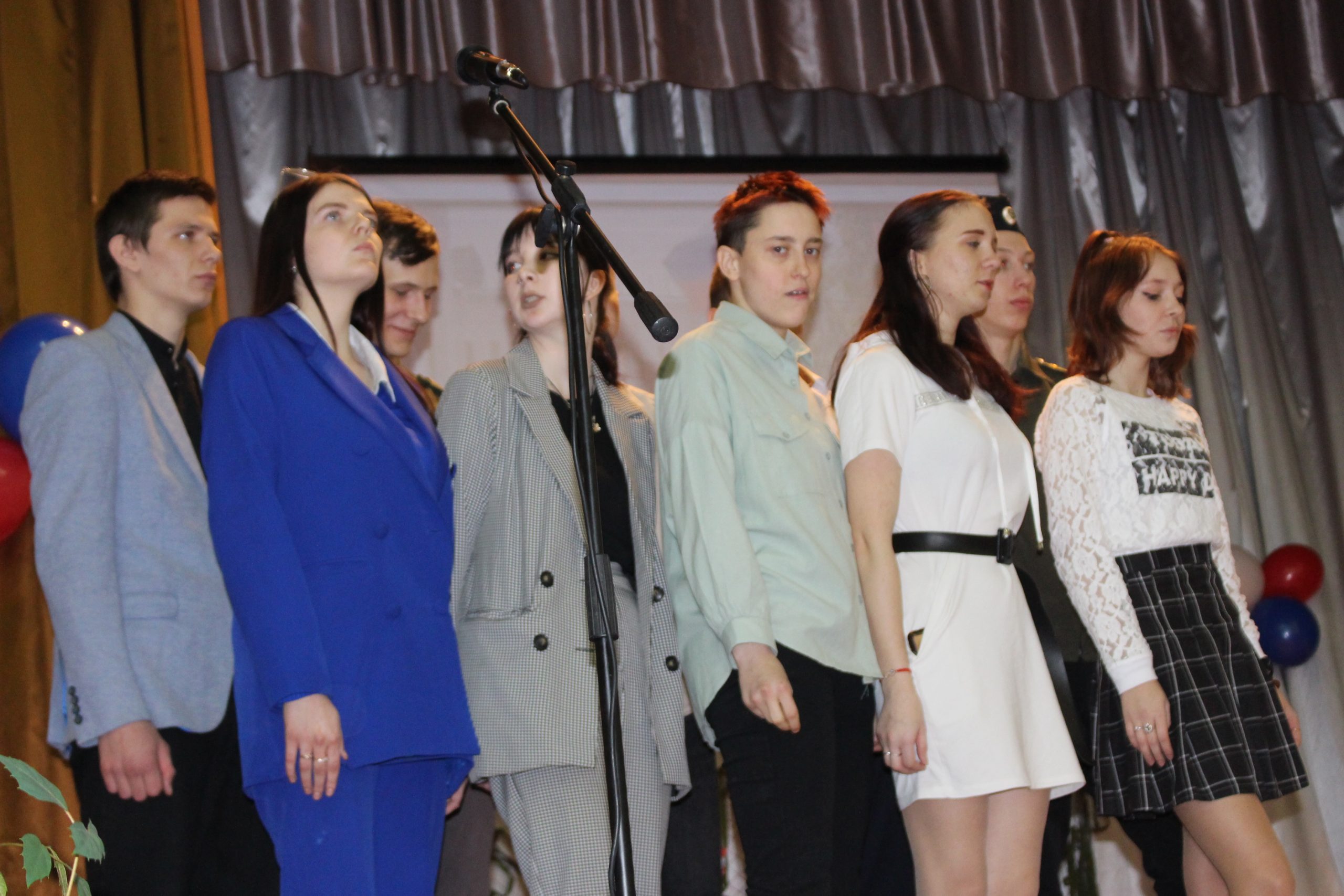 Помимо конкурсных работ ребята читали стихи, в том числе, собственного сочинения в память о тех, кому «всегда останется 20». Даже учащиеся из группы ПК-21 сплотились воедино, чтобы исполнить песню хором.