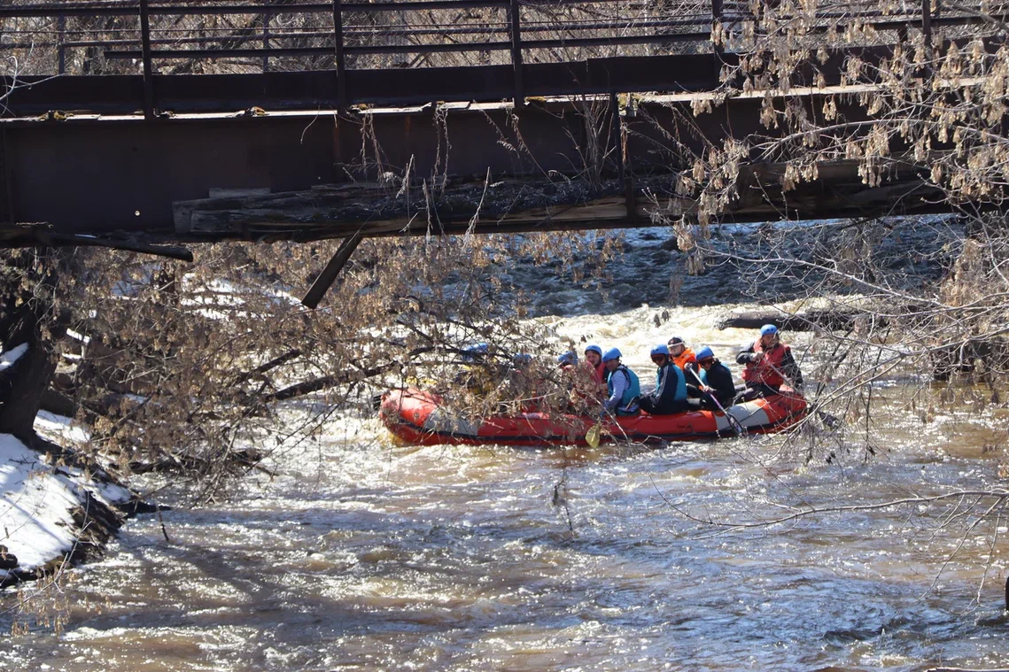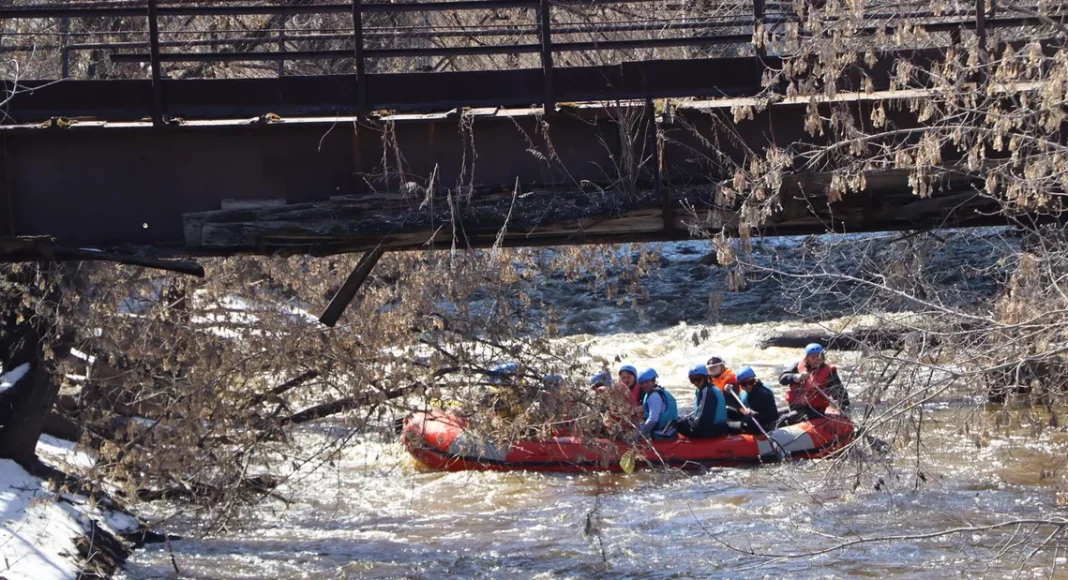«Расчёска!» Эта команда довольно часто звучала с кормы нашего рафта. Но это не значит, что нашему капитану постоянно требовалось пригладить кудри — это значило, что прямо по курсу судна маячит угроза в виде сильно наклонившегося к воде дерева. Лежащие почти горизонтально над водой клёны могут натворить бед, в почти прямом смысле «расчесав» экипаж. Зазевавшийся член команды рискует принять ванну из бодрящих апрельских вод прекрасной реки Барнаулки!