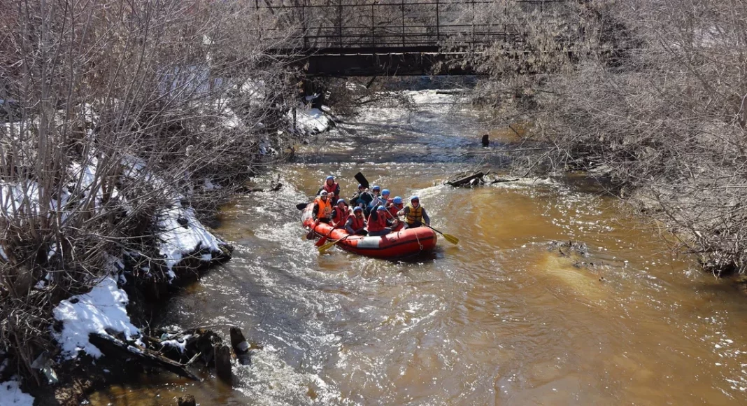 Небольшая предыстория. Нынешний сплав был юбилейным, тридцатым по счету. Бессменным шкипером и идейным вдохновителем сего действа является Вадим Вязанцев, участник известной барнаульской рок-группы «Дубовая роща». Почти каждую весну музыканты и сочувствующие собираются ради острых ощущений, чтобы пройти на рафте по бурным водам речки имени города. И ничто не встанет на пути отчаянных сплавщиков, даже внезапное похолодание и ещё лежащий кое-где на берегах свежий апрельский снег.
