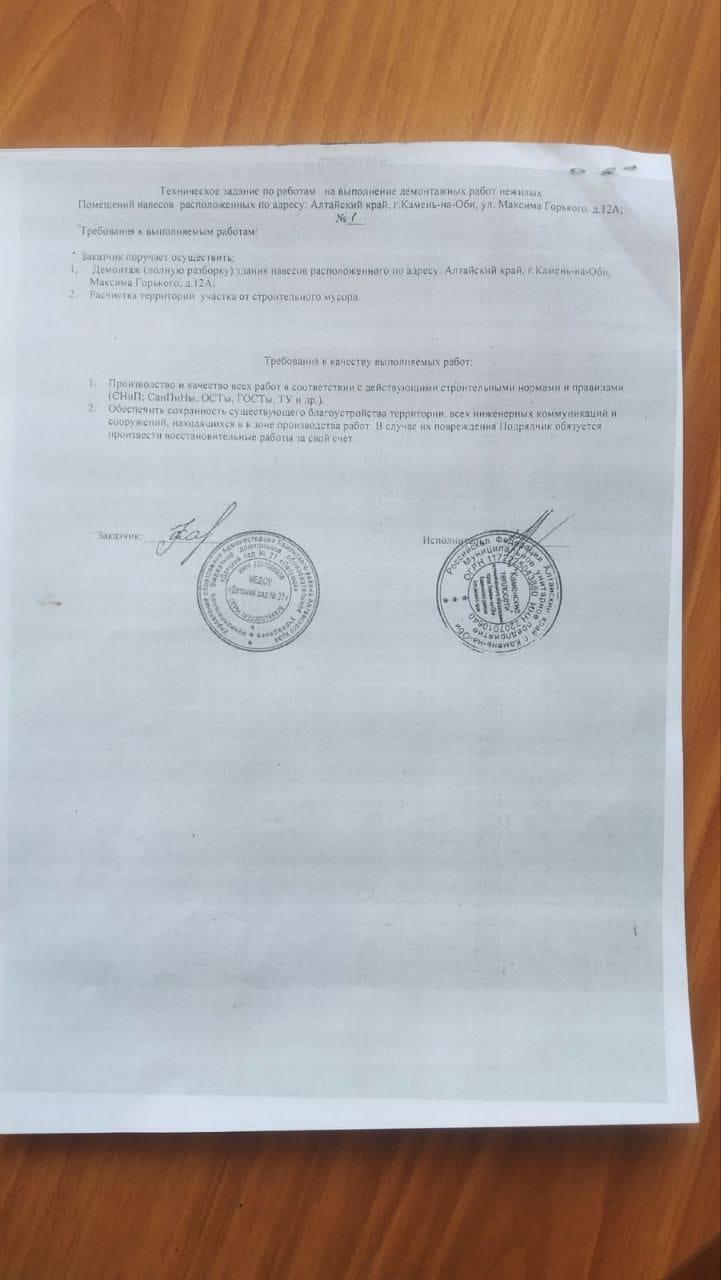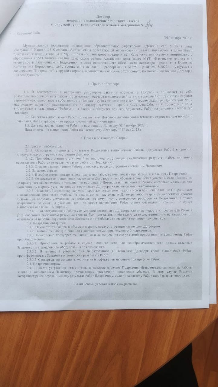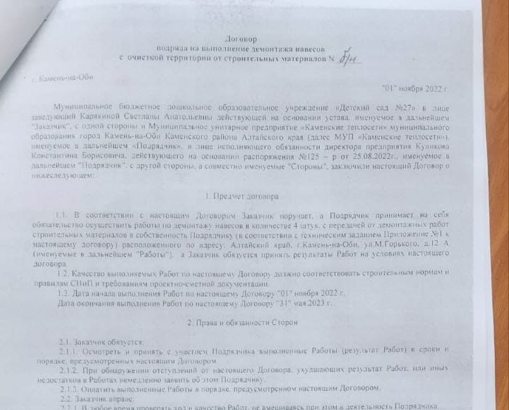 Примечательно, что контракт на демонтаж старых навесов в детском саду вообще носит безвозмездный характер с таким же пунктом — материалы забирает исполнитель контракта.
