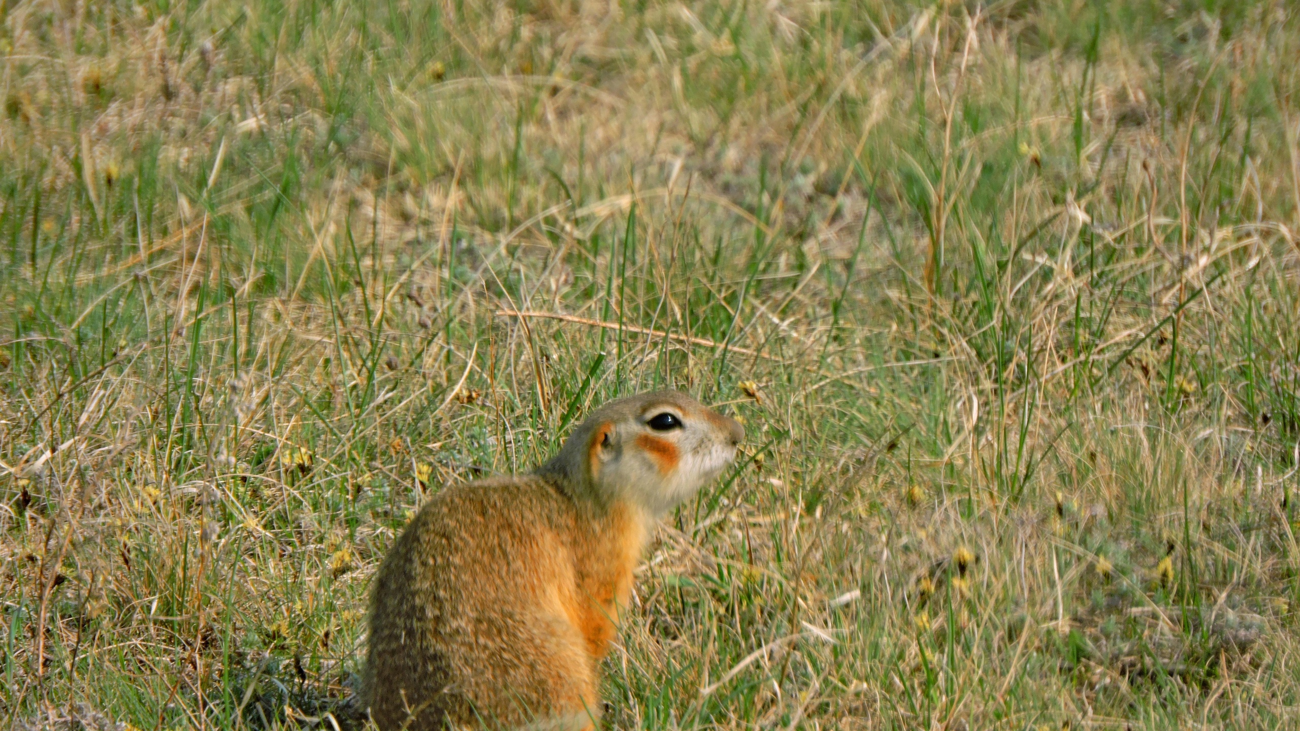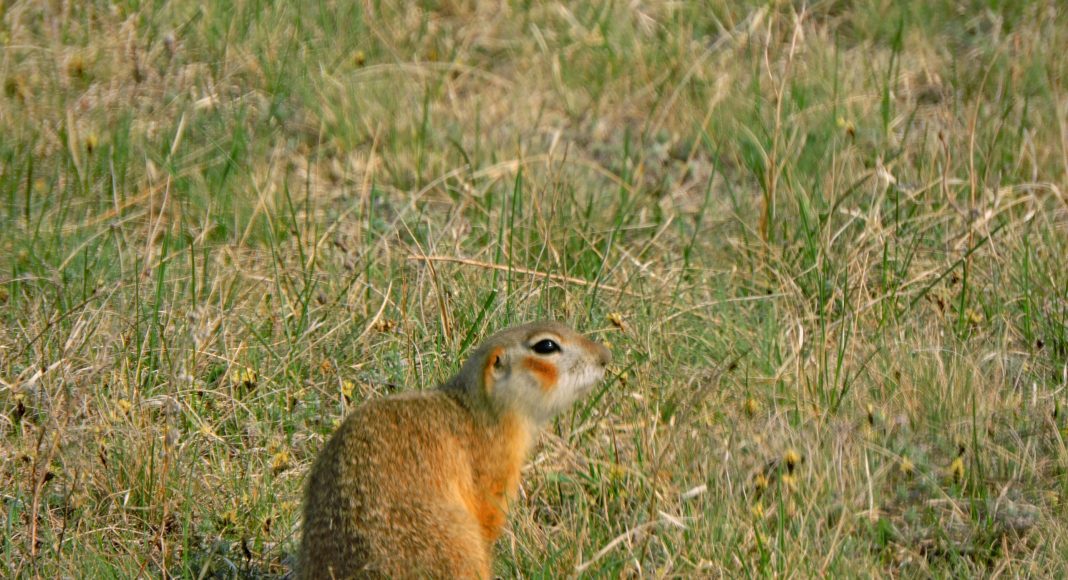 Первое место, которое мы безумно хотели посетить – колония грызунов-сусликов. К сожалению, первая точка, где живут суслики, была пуста и мы не заметили там не одной особи. Возможно, это связано с суровой зимой, которая знатно прославилась колючими морозами. На втором месте, где обитает большая колония грызунов, нам встретился всего один суслик. Пообщавшись с местным жителем, мы узнали, что недалеко от поляны, где как раз и проживает большая семья сусликов, завелся мелкий хищник, ласка или куница. Хищник разоряет гнезда грызунов и почти как в русской народной сказке «Теремок», выгоняет жильцов норки на улицу. Сложно пока сказать, почему краснощёких сусликов стало так мало, но мы будем наблюдать за ними и подтверждать или опровергать свои предположения.
