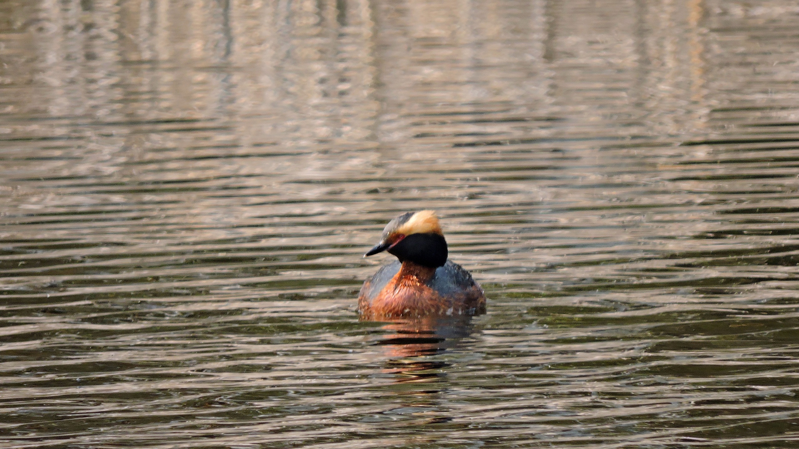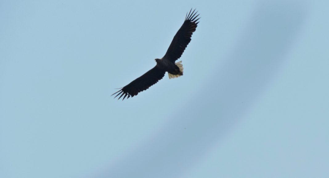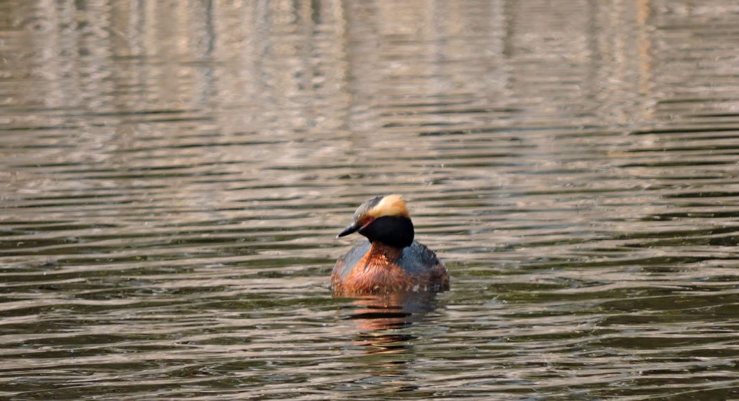 И вот, активисты программы «Усынови Заказник» уже мчат к озеру Утиному, где сейчас явно много пернатых водоплавающих. На озере плавали красноголовые нырки, чернети и черношейные поганки, лебедь-кликун. Пока мы фотографировали уток, в небе кружил орлан-белохвост, тоже частый гость на этом водоёме. Нам удалось сделать много красивых кадров редкой птицы. Кроме того, много хороших кадров получилось красношейной поганки, которая довольно близко подплыла к нам. Её золотые рожки невозможно перепутать с никакой иной птицей. Недалеко от озера Утиного мы проверили два гнезда большого подорлика. Сложно пока говорить о том, жилые они или нет, это будет видно в начале июня.