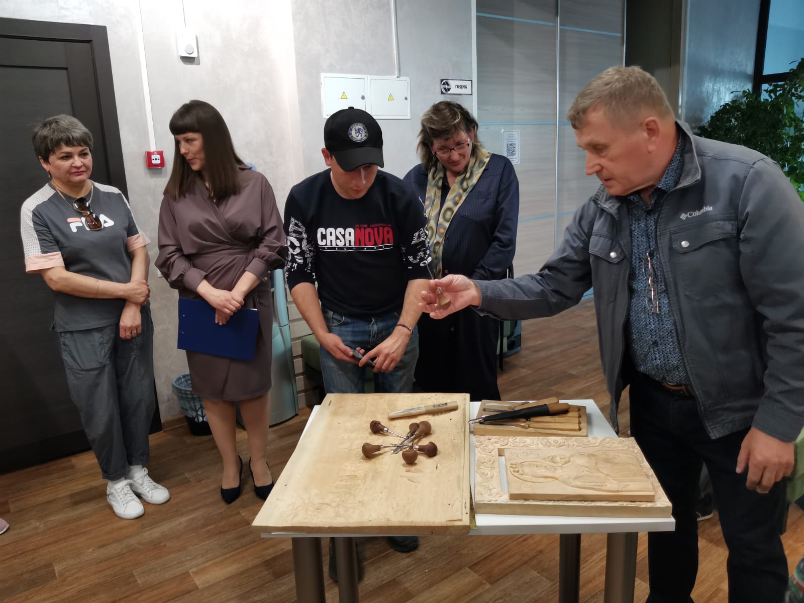 Гостям культурного мероприятия Стригуненко рассказал о том, как с помощью книг и интернета он, будучи следователем, а затем и судьей, учился работать со специальным инструментом и кедровыми полотнами. По его словам, это занятие стало для него не просто хобби, а увлечением всей его жизни. Встреча носила неформальный характер и поэтому прошла с нотками теплоты и душевности.