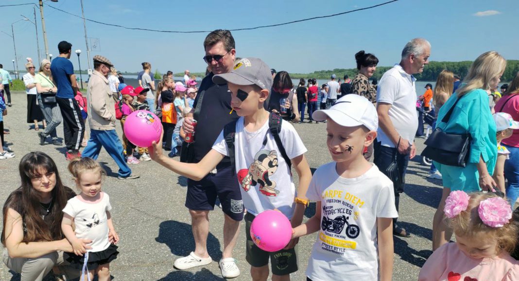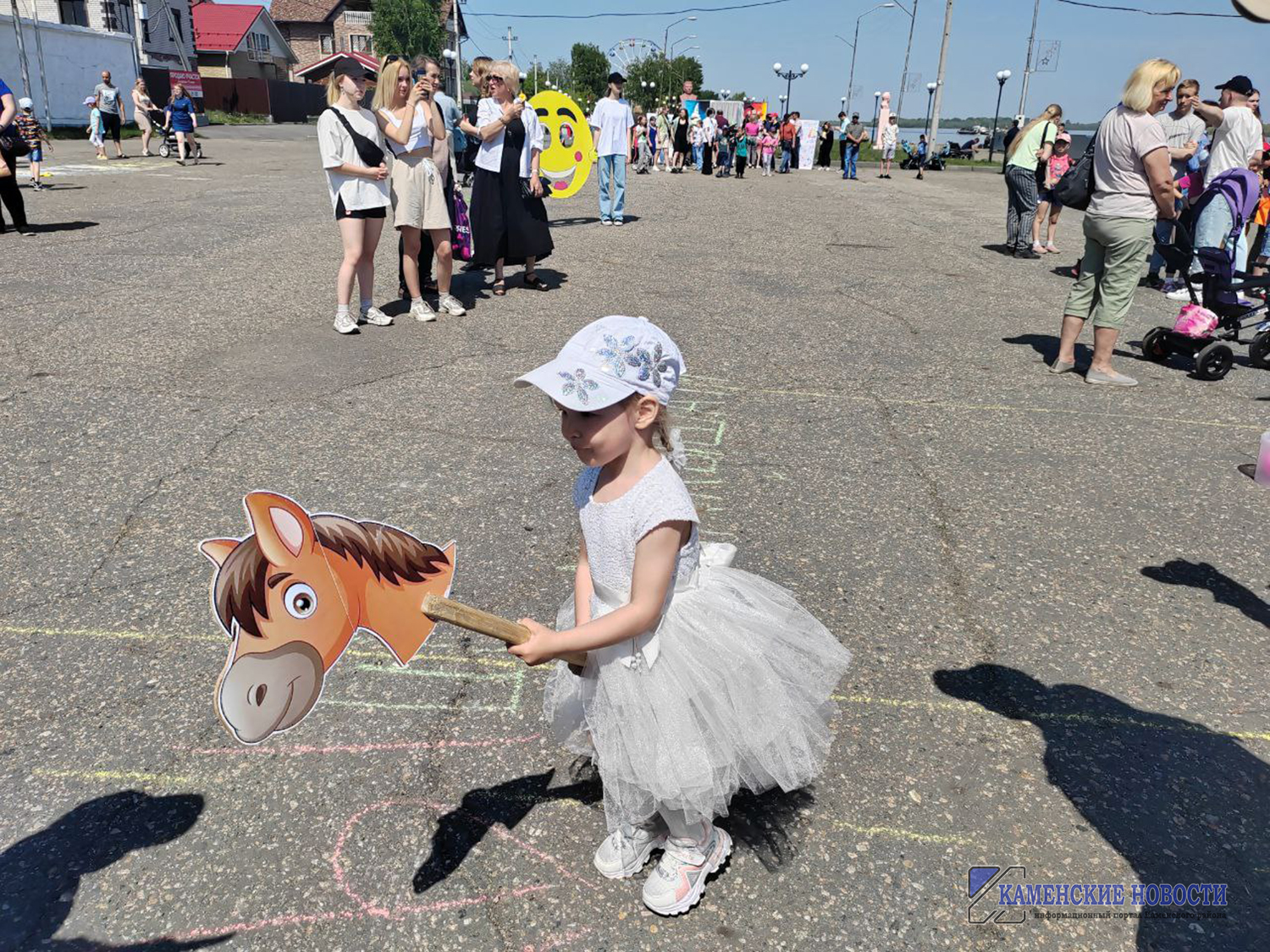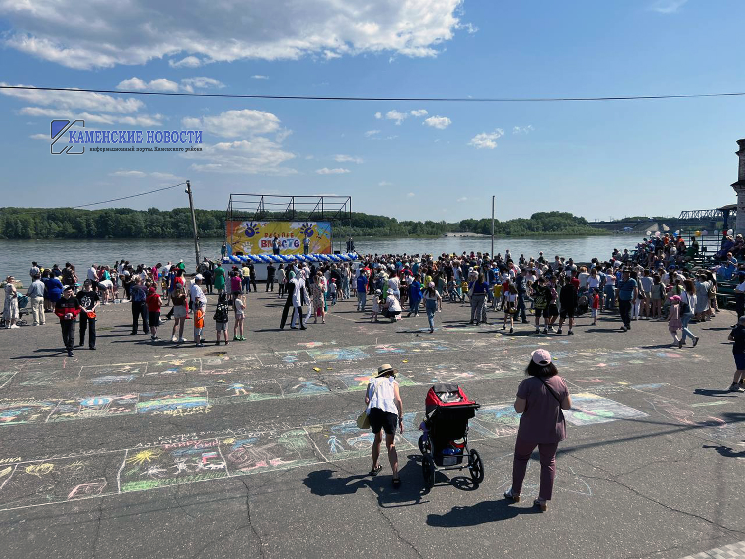 Сегодня в Камне-на-Оби на набережной площади прошло традиционное празднование Дня защиты детей и по совместительству первого дня лета. Кроме конкурса рисунков на асфальте, ставшего уже классикой, творческими силами РДК и волонтеров была подготовлена концертная программа. Тоже, кстати, вполне традиционная. Вкупе с ними для детей здесь же, на площади у сцены, были подготовлены разные развлечения — от перетягивания каната до аквагрима и огромной, в рост, раскраски. Каждый мог получить фломастер и внести в импровизированное панно свою лепту. В то же время на сцене выступали артисты.
