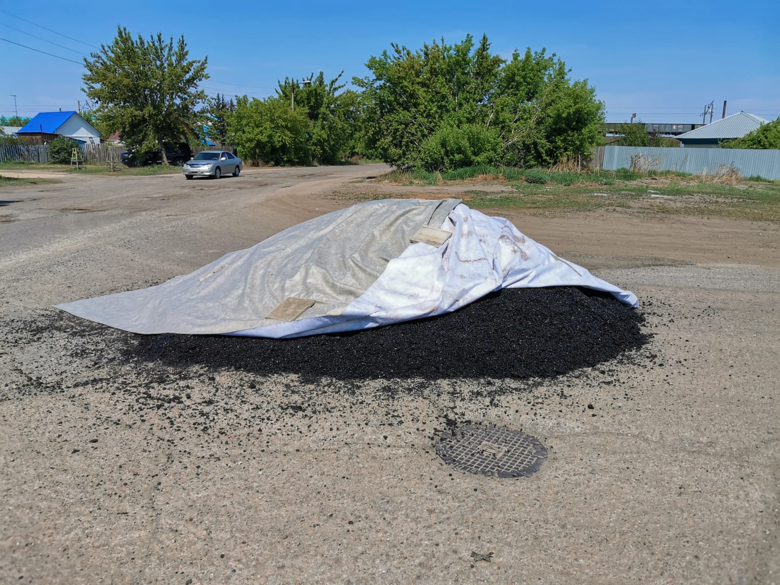 Асфальтовая смесь, которую увидел житель Камня, была использована через несколько часов после выгрузки. На качество и температуру выгрузка не повлияла.Целлофаном асфальтовая смесь, как раз, специально и была накрыта, чтобы сохранить температуру на уровне 145 градусов по Цельсию. таким образом за день мы использовали 30 тонн асфальтовой смеси, чтобы залатаь дорожные ямы.