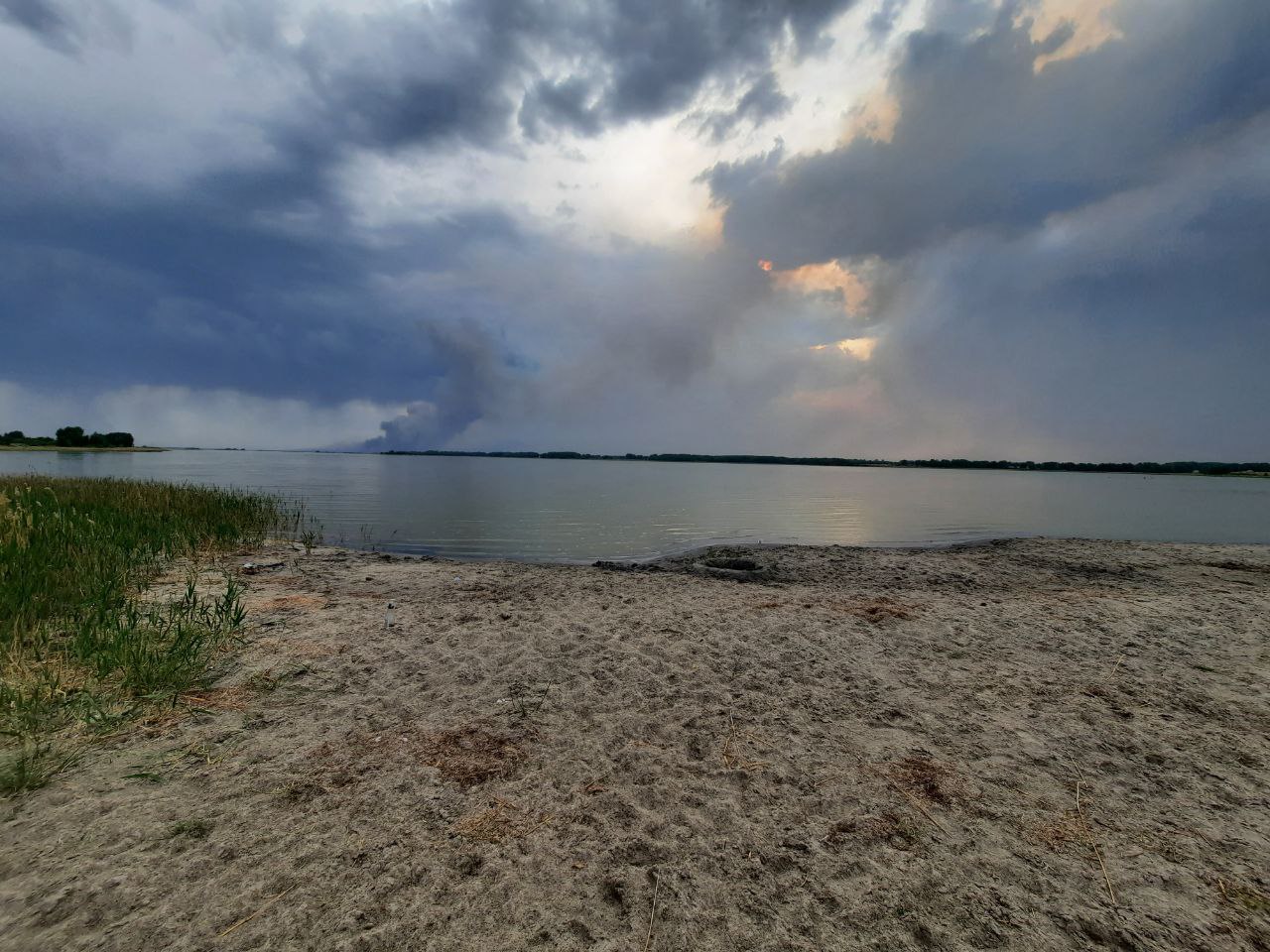 Пламя охватило участок Баевского лесничества в 2,5 км от села Грязново Тюменцевского района. Огонь отделяет от населенного пункта озеро Большое Утичье. Сейчас селу ничего не угрожает.