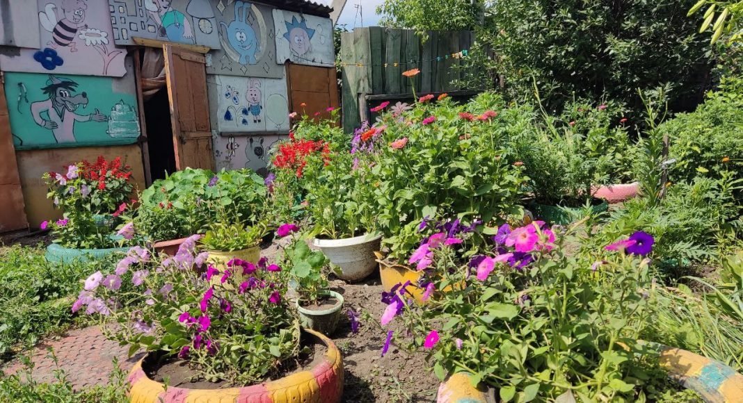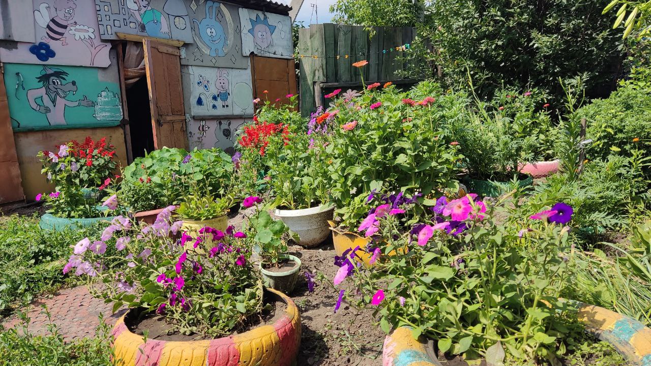 Сама привела в порядок старые сарайки во дворе, разукрасила их стены. Сделали для жильцов небольшую беседку для отдыха. Все сами.
