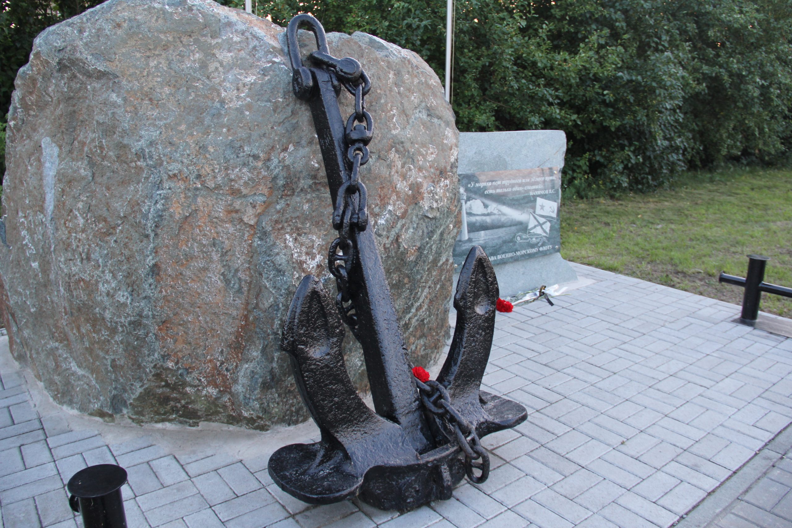Камень в Камень специально везли из Милованово. Якорь весом 450 кг заказывали в Новосибирске. Гранитную табличку у местного умельца. Не пожалели моряки собственных средств ради увековечивания незабываемых для каждого моментов службы на флоте.