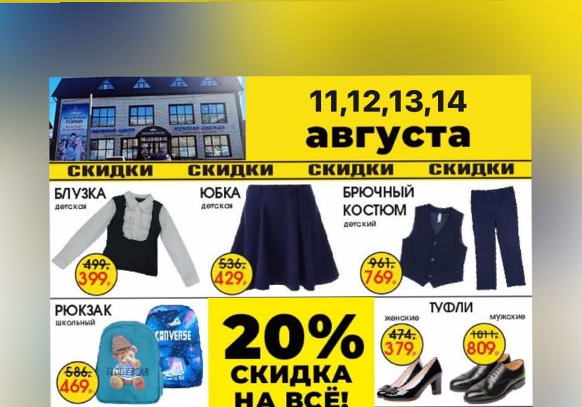 Только четыре дня — 11, 12, 13, 14 июля скидка на весь ассортимент товара -20%.