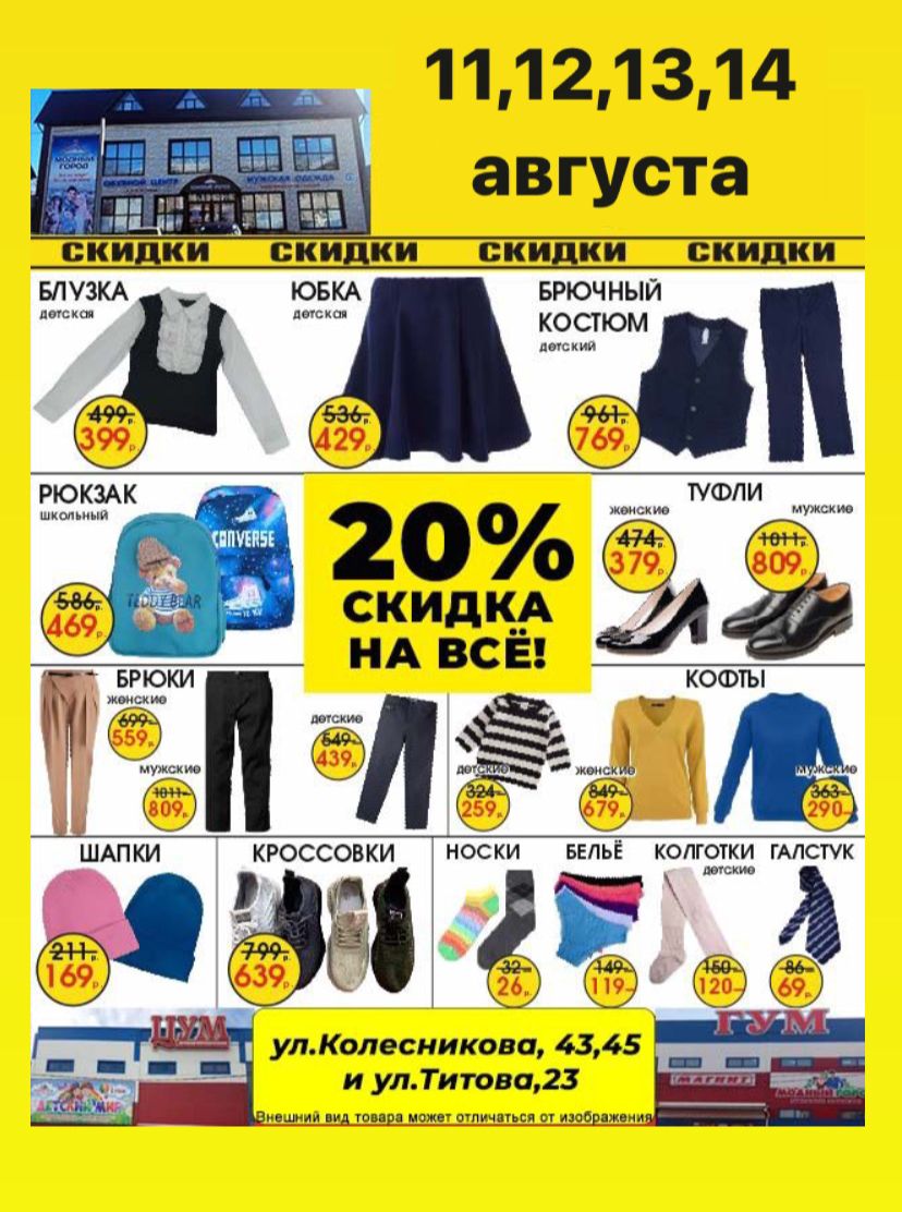 Ждём вас по адресам: магазины ЦУМ и ГУМ: ул. Колесникова, 43, 45, ул. Титова,23