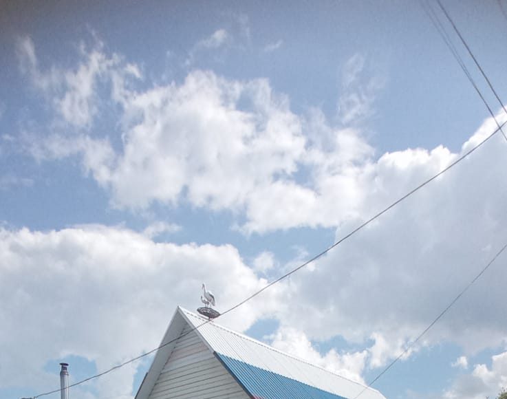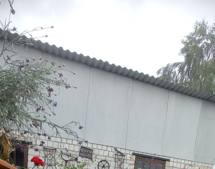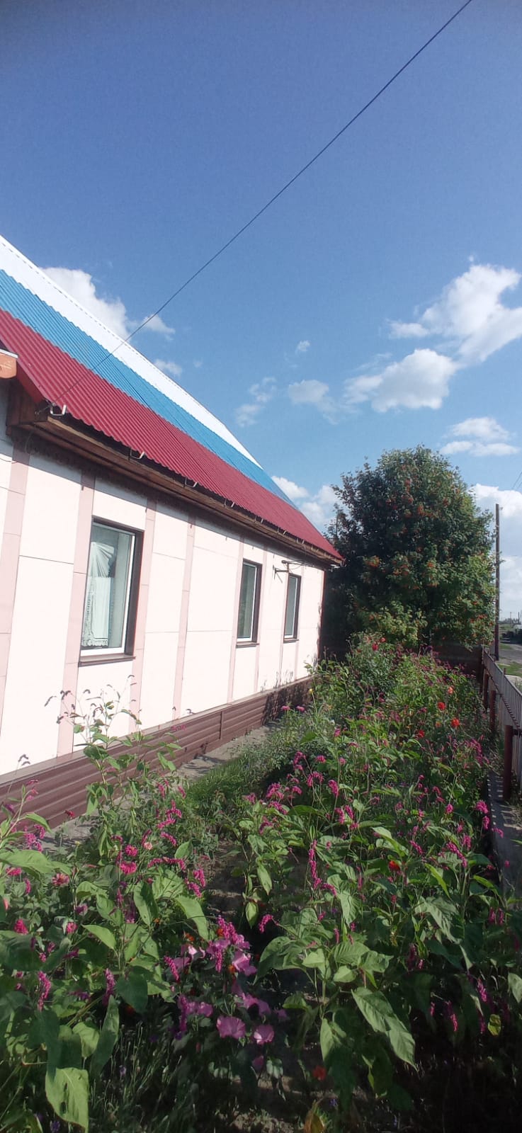 Николай и Екатерина Матвиец находятся на пенсии и каждый день наводят порядки на своём участке (который к слову практически 30 соток). Изюминка нашего дома это крышка триколор (флаг России).