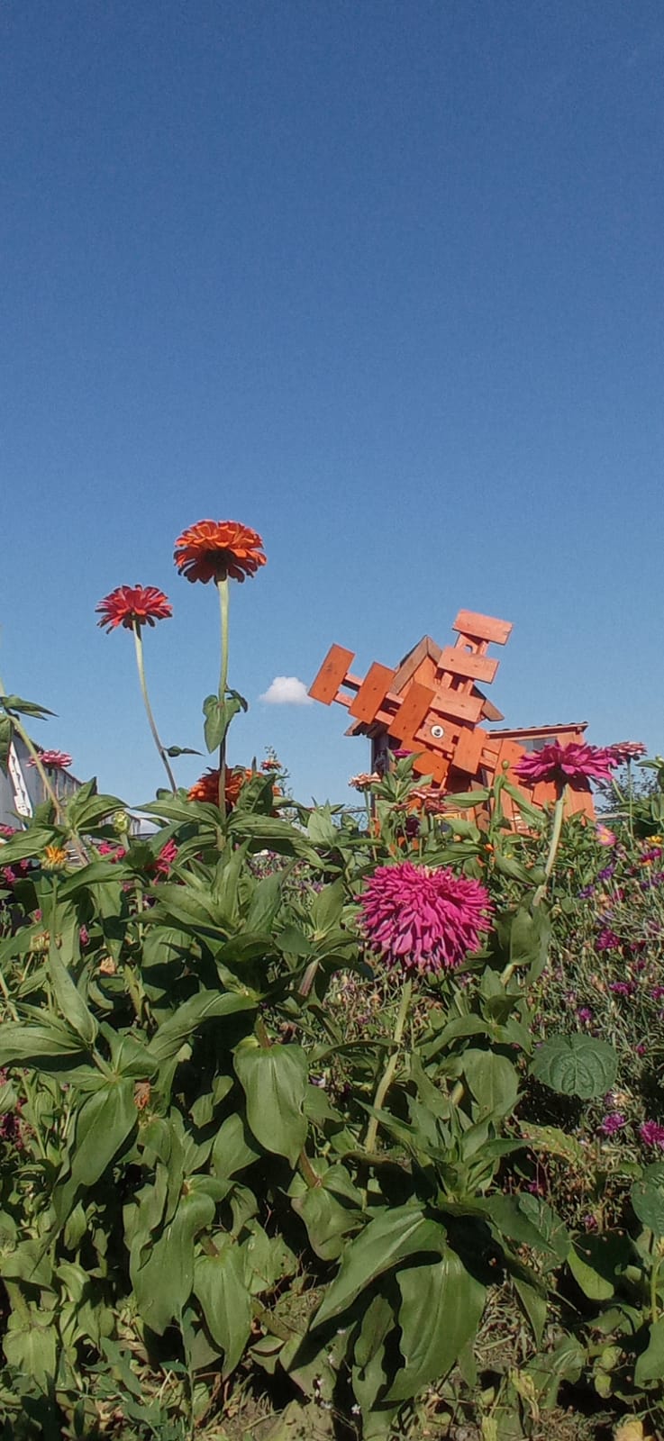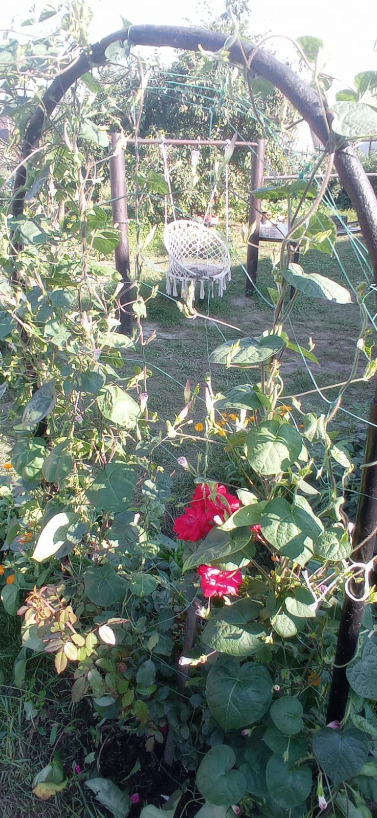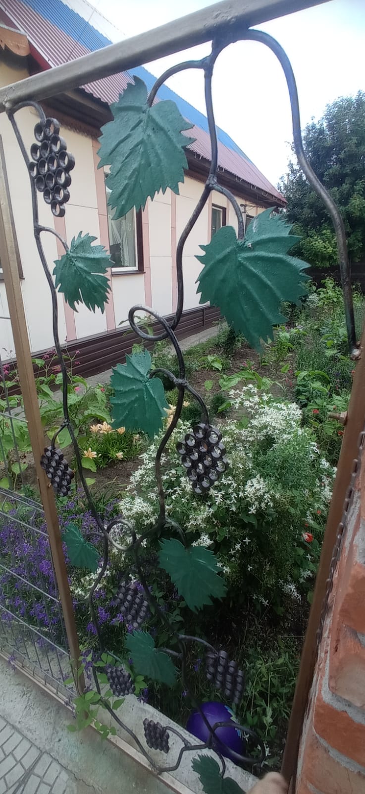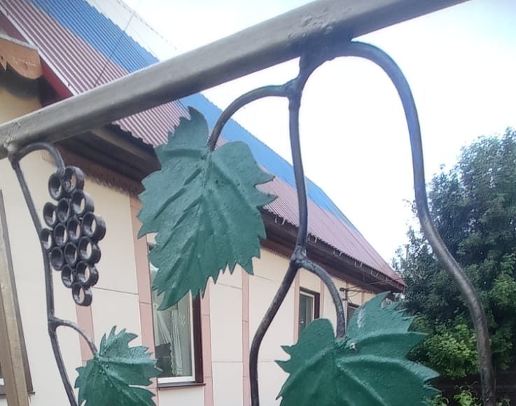 Хозяин дома любит оригинальность и сам придумал ворота ( железный рубль стоит в красных сапожках на долларе и евро). Уютом и цветами занимается хозяйка дома,  вокруг дома да и в самом доме, всё в цветах. Во дворе на стене два лебедя, которые символизируют крепкую семью, которая в следующем году будет отмечать золотую свадьбу. Также здесь экспозиция в виде колодца и мельница, которая как настоящая вертится во время ветра. Ну а мы дети и внуки, которые увидели этот конкурс и решили в нём поучаствовать, очень любим приезжать сюда летом и наслаждаться этой красотой!