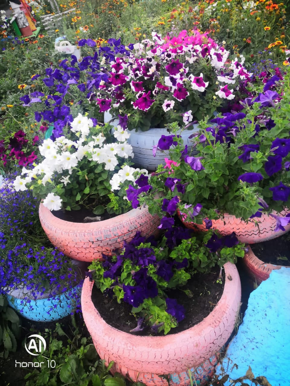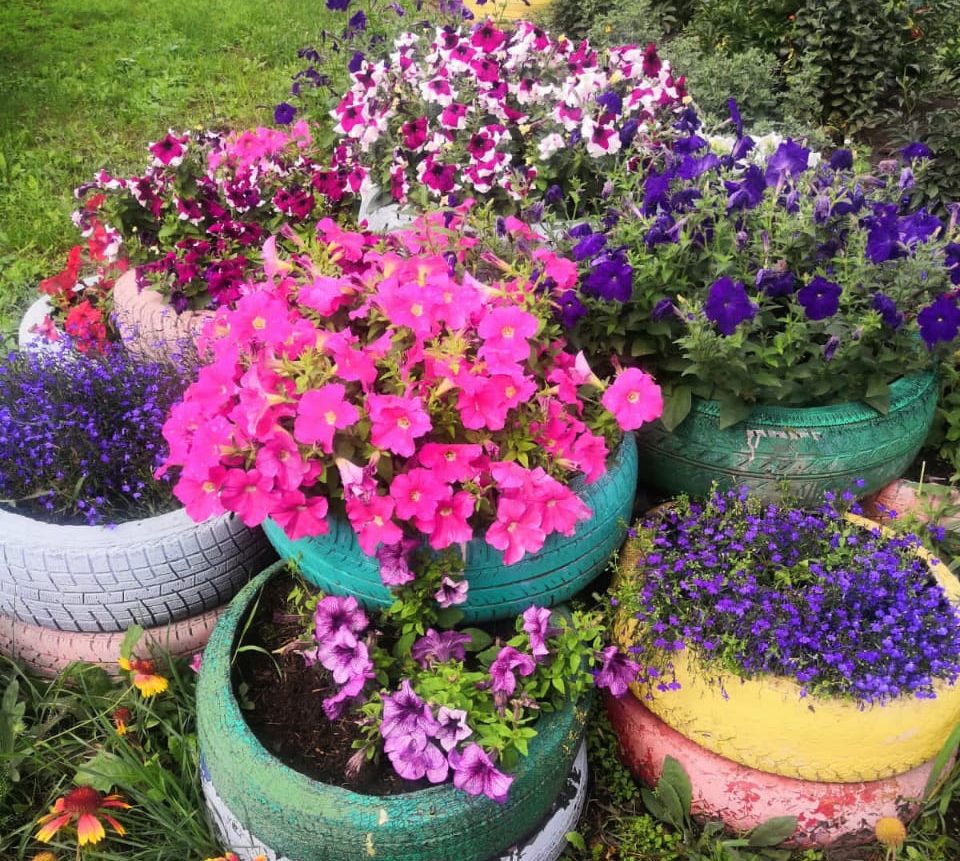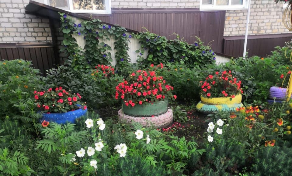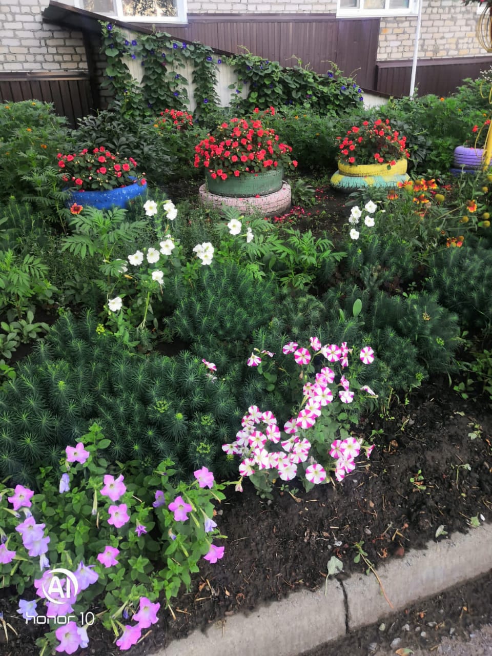 Благоустроить  двор своими руками не так уж и сложно. Для этого достаточно иметь желание создавать красоту и проявлять немного фантазии. И как приятно пройти по тротуару и любоваться разнообразием цветов и их ароматом. Или в летний зной присесть на скамейку в тени красавицы яблоньки. Возле таких цветочных клумб и поделок своими ручками люди часто останавливаются, любуются и фотографируются. Цветы они у нас везде. С какой стороны дома бы не зашёл, везде глаз радуется. Цветник всегда в надлежащем порядке и в этом заслуга Кузнецовой Натальи.