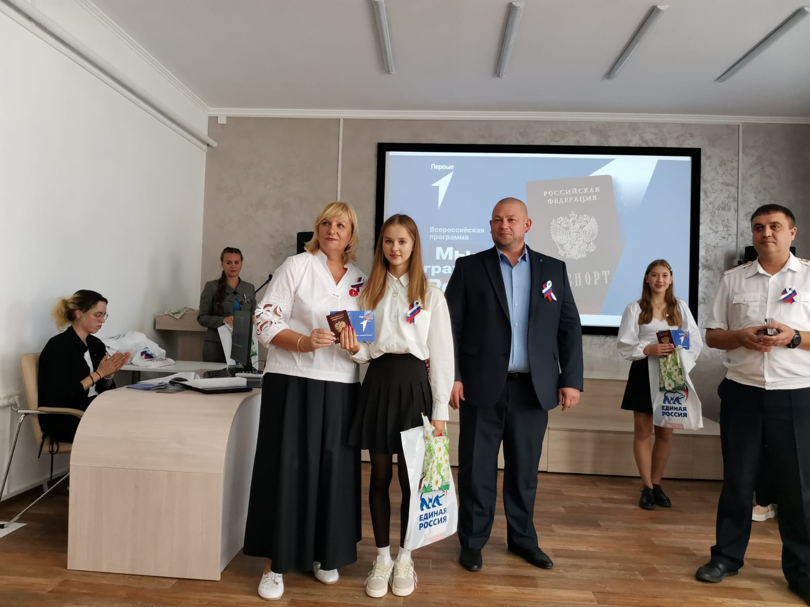 22 августа свои первые паспорта из рук представителей районной администрации и МО МВД России «Каменский» получили: Арина и Карина Дворниковы, Ксения Паршукова, Анжела Чикова, Савелий Чмелых, Валерия Макеева, Ксения Цупенкова, Дарья и Александра Абраменко, Иван Фиронов, Анна Зыкун, Данил Жахолов и Маргарита Пушкарева.
