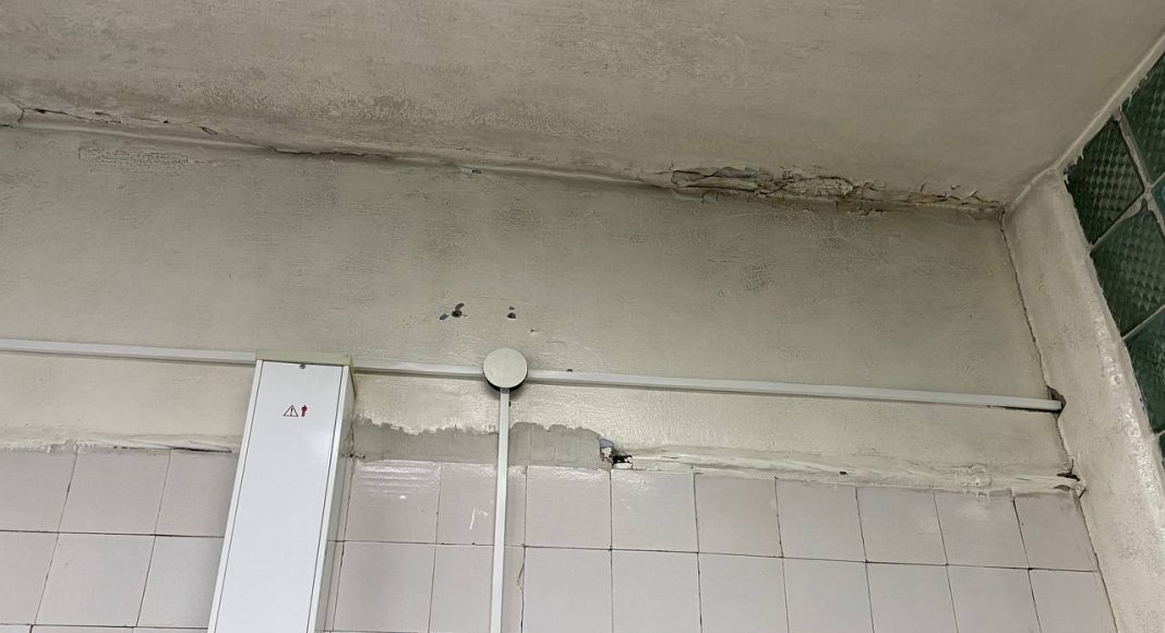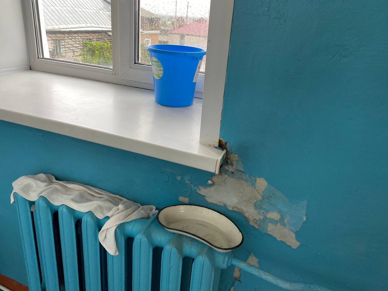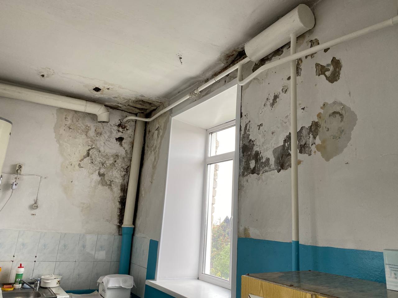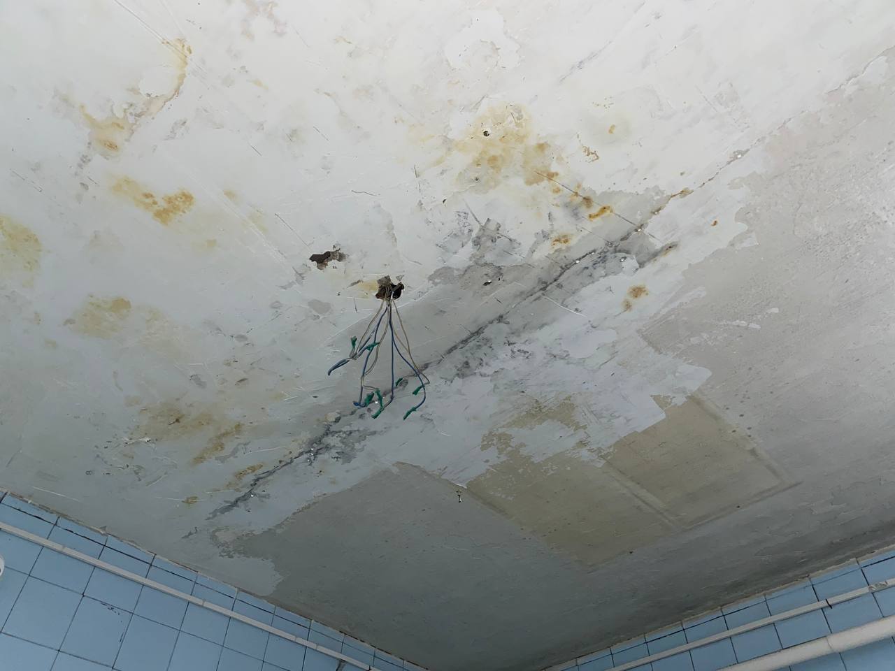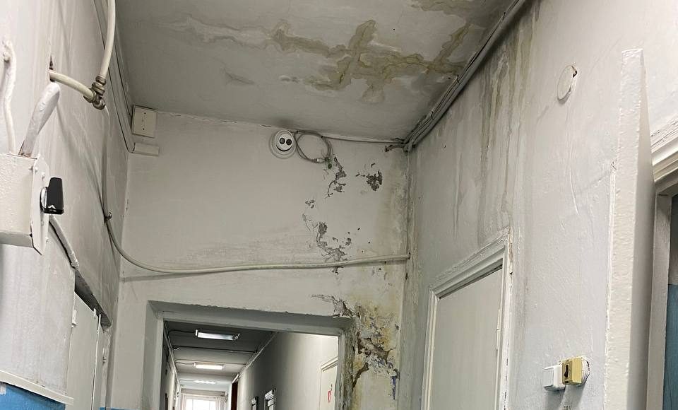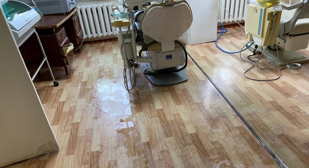 Как оказалось, уже не один год врачи и младший медперсонал молча терпят ужасающие условия работы. Во время дождей здание, где располагается медучреждение (ул. Карла Маркса) превращается в решето. С потолков здесь бежит уже не один год, от этого они чернеют и обваливаются. В зимнее время года температура воздуха в некоторых помещениях достигает + 10 градусов. А недавно, как рассказали сотрудники медучреждения, в хирургическом кабинете на пациента с потолка упал кусок штукатурки. Пациент написал жалобы и со дня на день стоматология ждет прокурорской проверки. Для этих целей был загрунтован и должен покраситься совершенно мокрый потолок, с которого во время дождей льет.