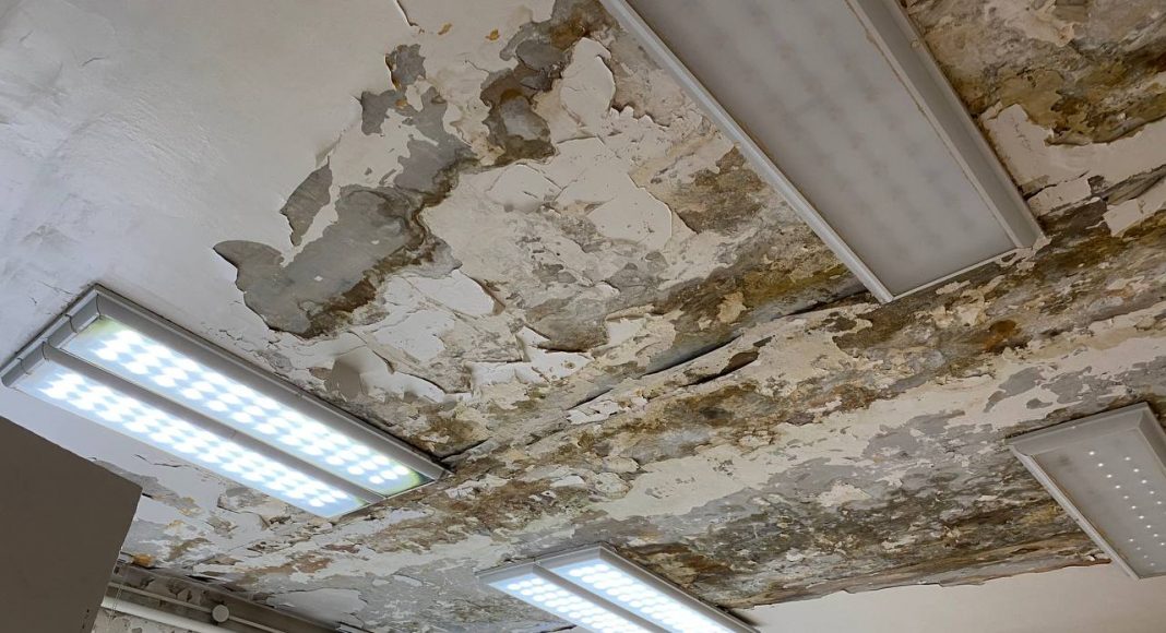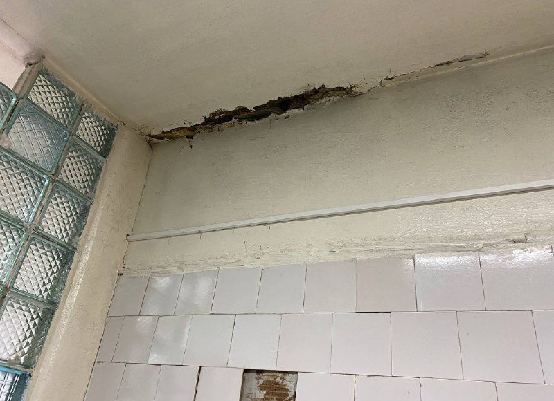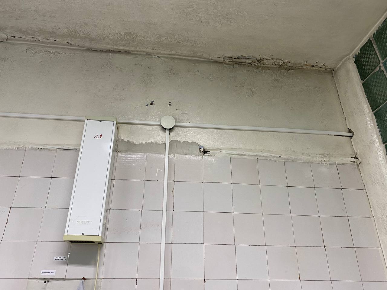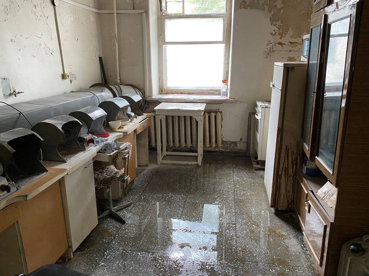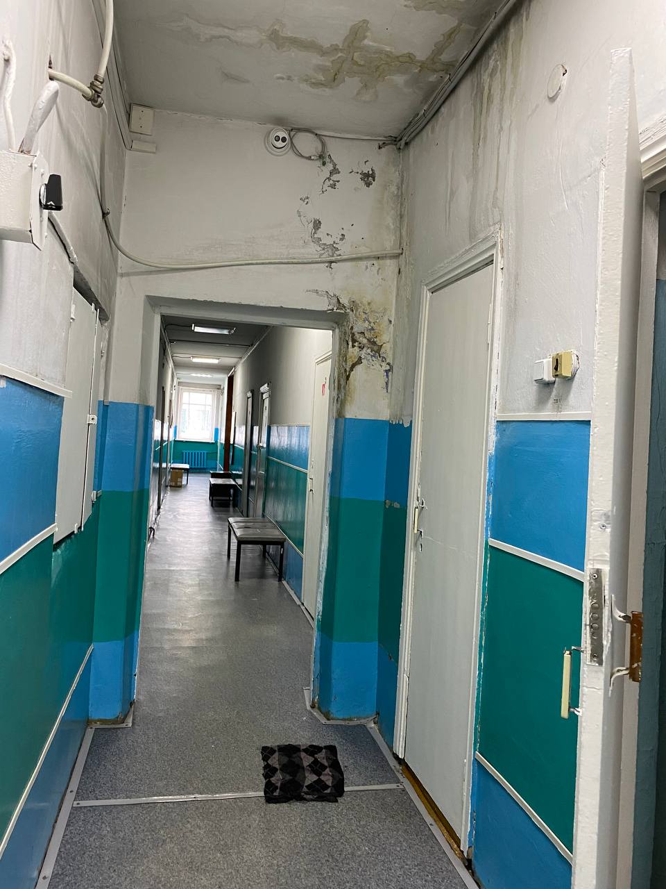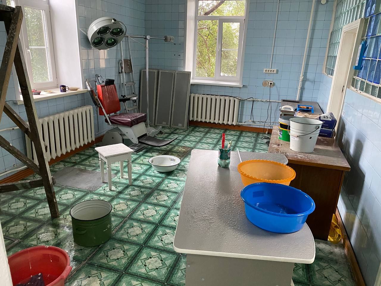 Как оказалось, уже не один год врачи и младший медперсонал молча терпят ужасающие условия работы. Во время дождей здание, где располагается медучреждение (ул. Карла Маркса) превращается в решето. С потолков здесь бежит уже не один год, от этого они чернеют и обваливаются. В зимнее время года температура воздуха в некоторых помещениях достигает + 10 градусов. А недавно, как рассказали сотрудники медучреждения, в хирургическом кабинете на пациента с потолка упал кусок штукатурки. Пациент написал жалобы и со дня на день стоматология ждет прокурорской проверки. Для этих целей был загрунтован и должен покраситься совершенно мокрый потолок, с которого во время дождей льет.