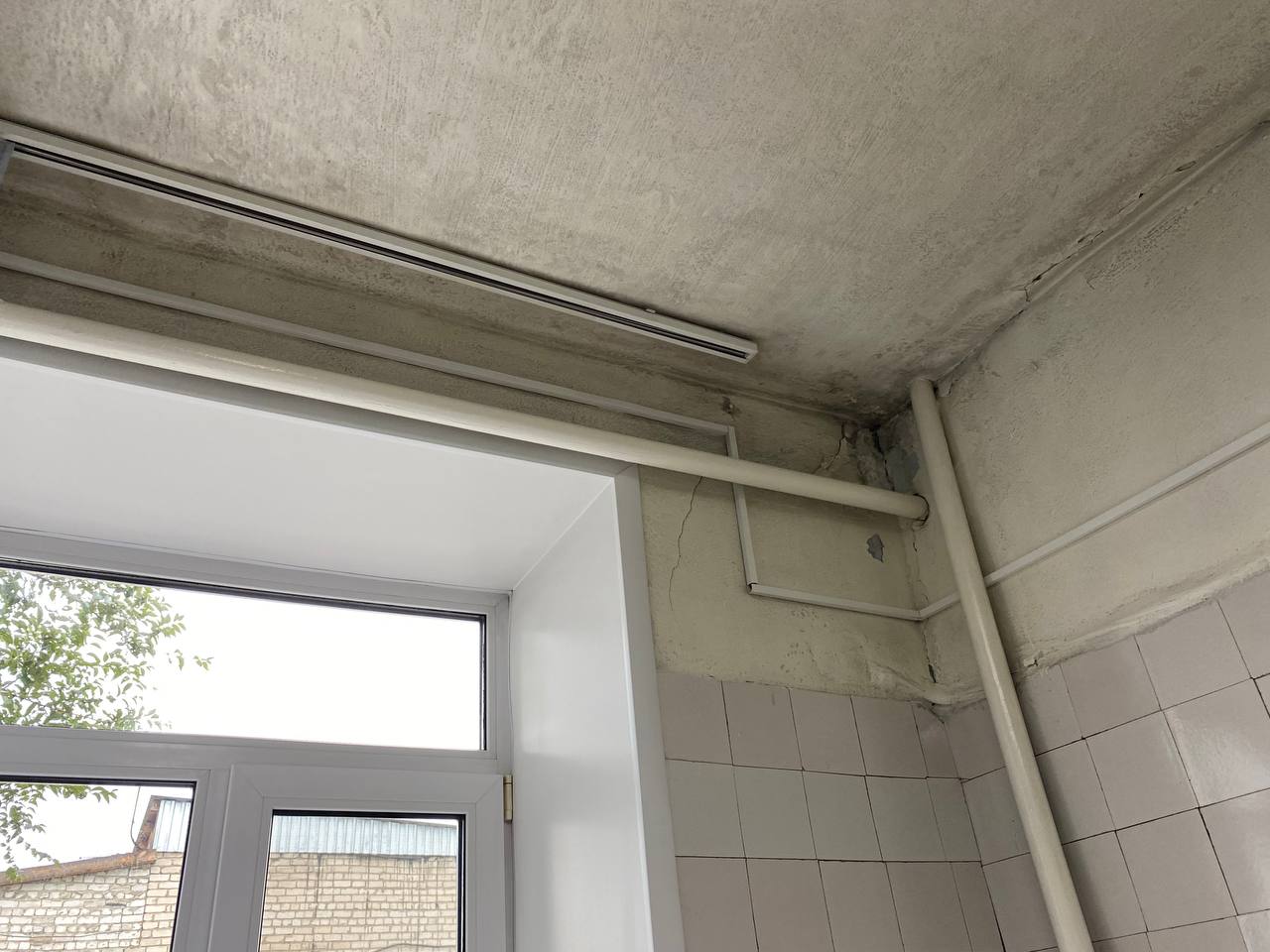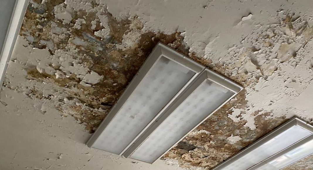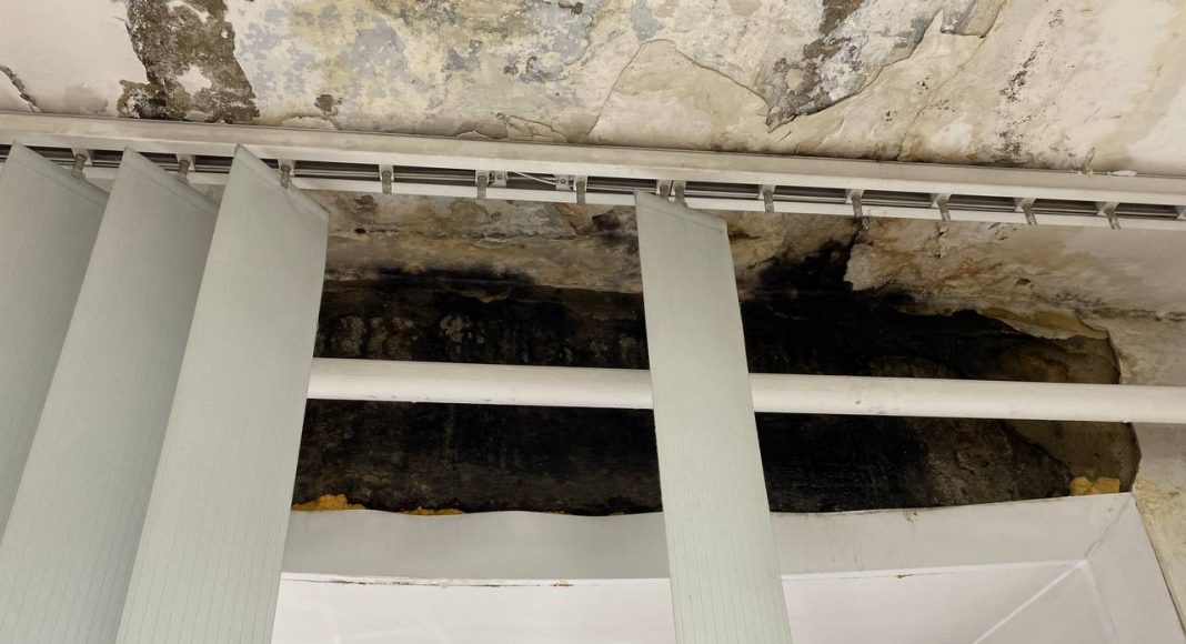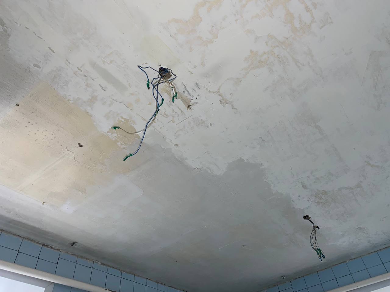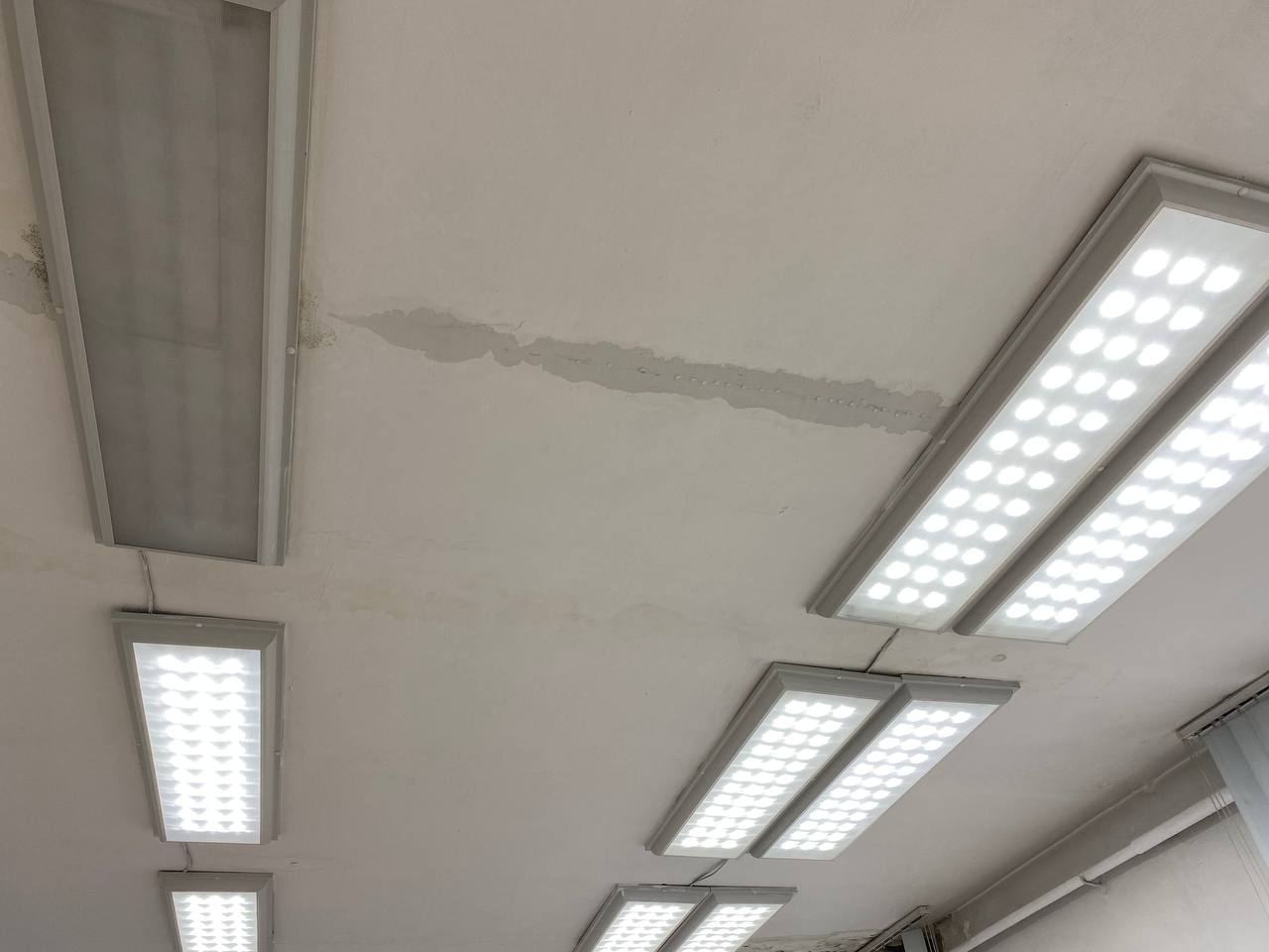 Сегодня в городе дождь и врач была вынуждена перенести прием двух пациентов, так как с потолка бежит прямо на стоматологическое оборудование.