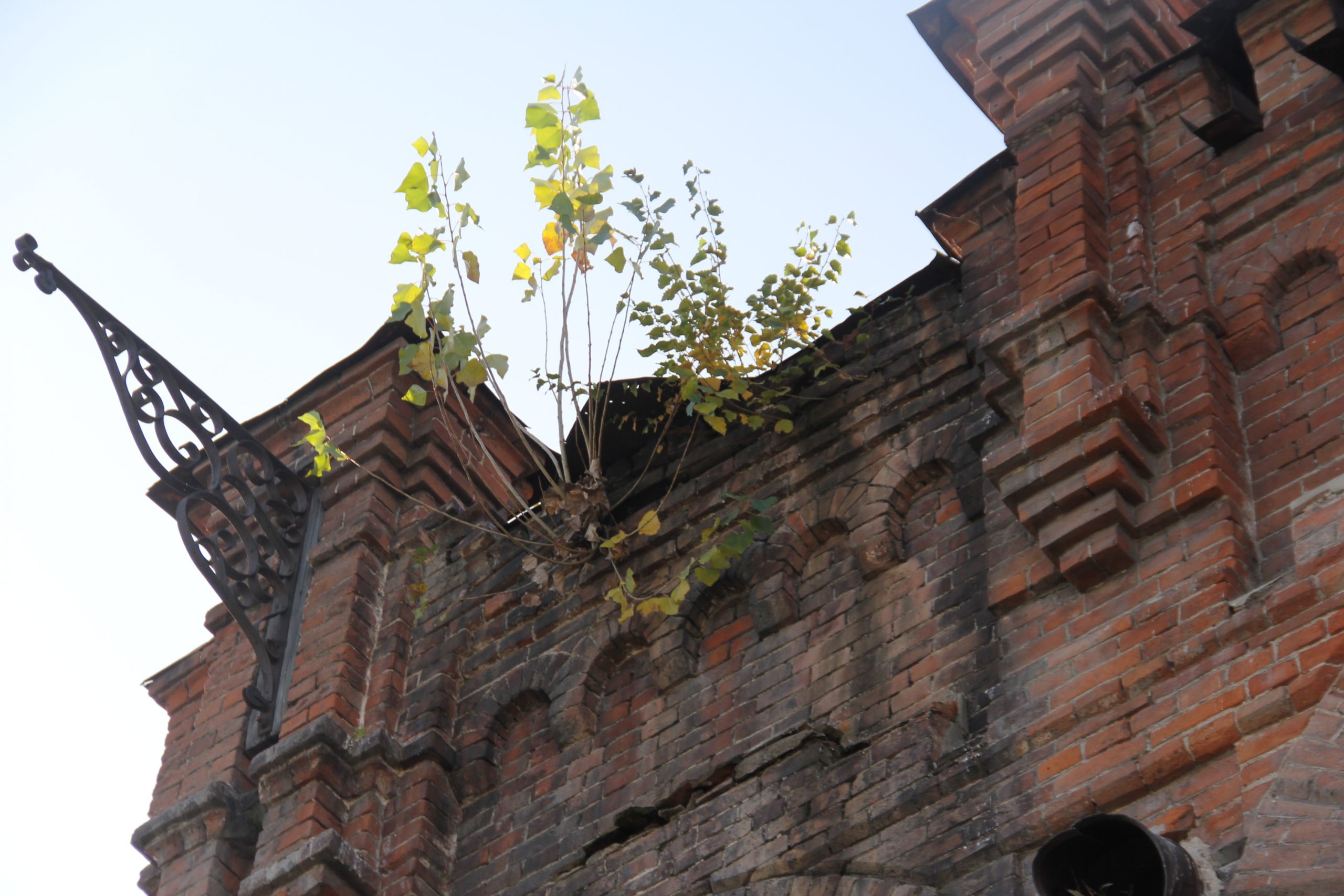То ли давно мы «опусов» не писали, то ли работу по ликвидации деревьев сделали некачественно, для галочки, убрав то, что на виду, без корней. Но последствия мы видим сегодня. Уже хорошо укоренившиеся в кирпичной кладке березы и тополя чувствуют себя прекрасно, возвышаясь над городом. И даже несмотря на осенние заморзки, их листья еще практически не пожелтели.