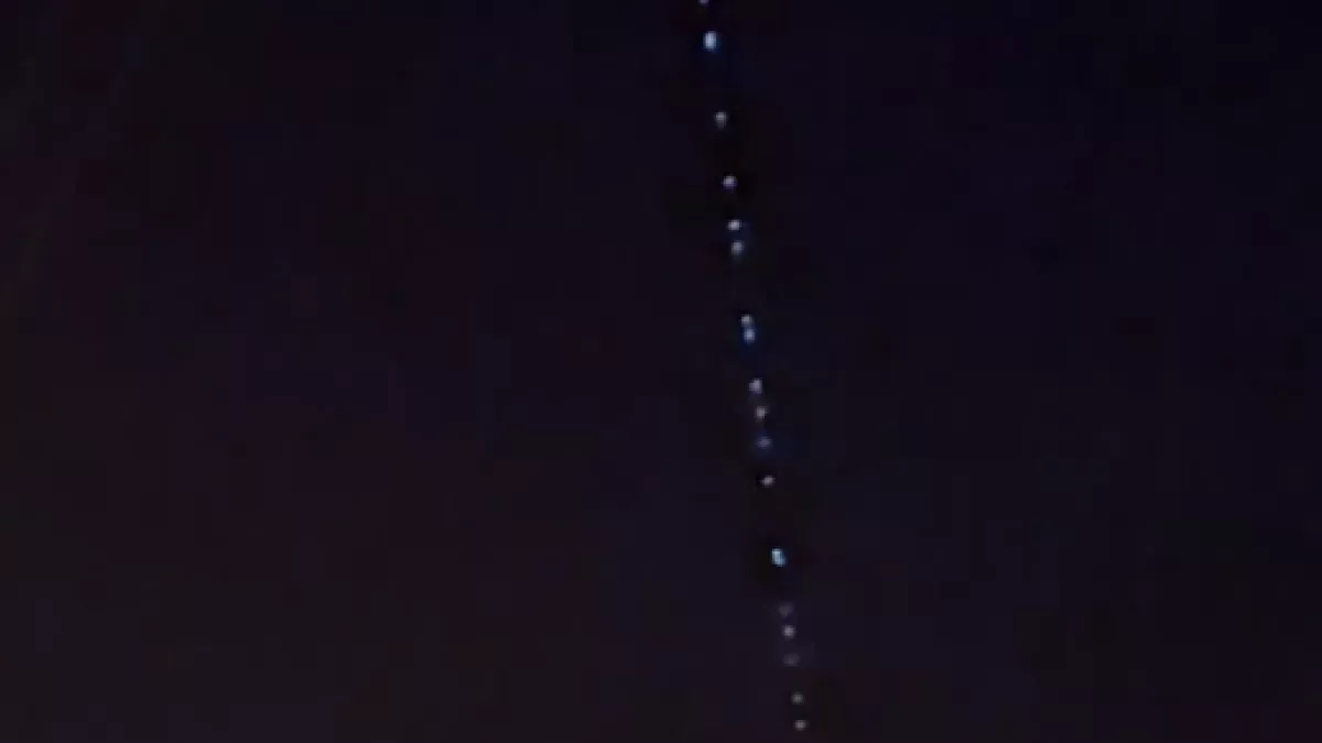 На кадрах видно, как огоньки вереницей один за другим перемещаются по звездному небу. Глядя на эту картину, создается ощущение, что поезд едет в космос