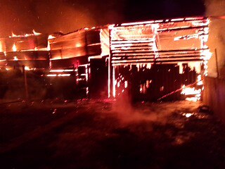 Пожар в поселке Октябрьский на улице Молодежной начался в полночь. Языки пламени постепенно охватили внушительную площадь хозпостроек, которая составила 120 кв. м.