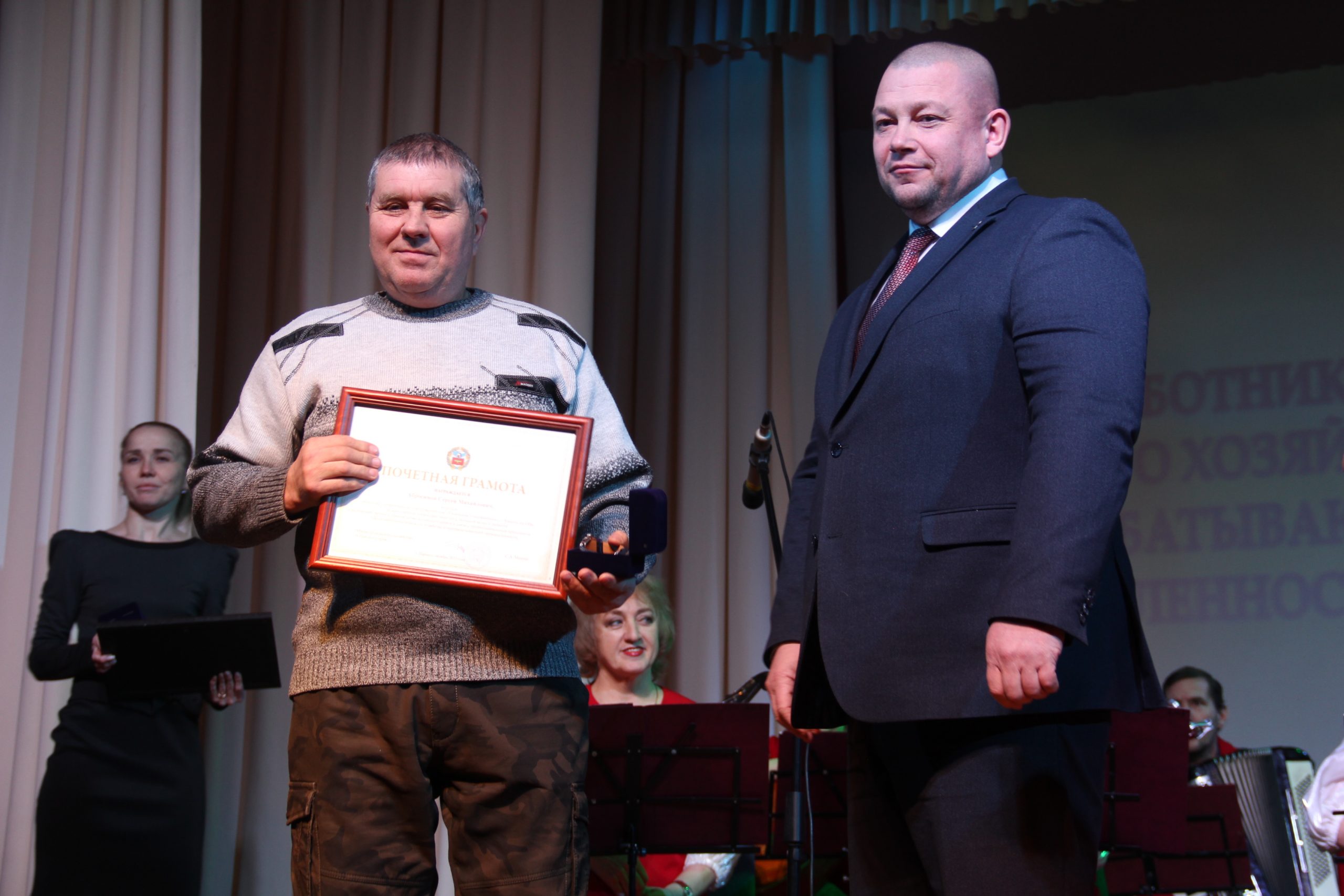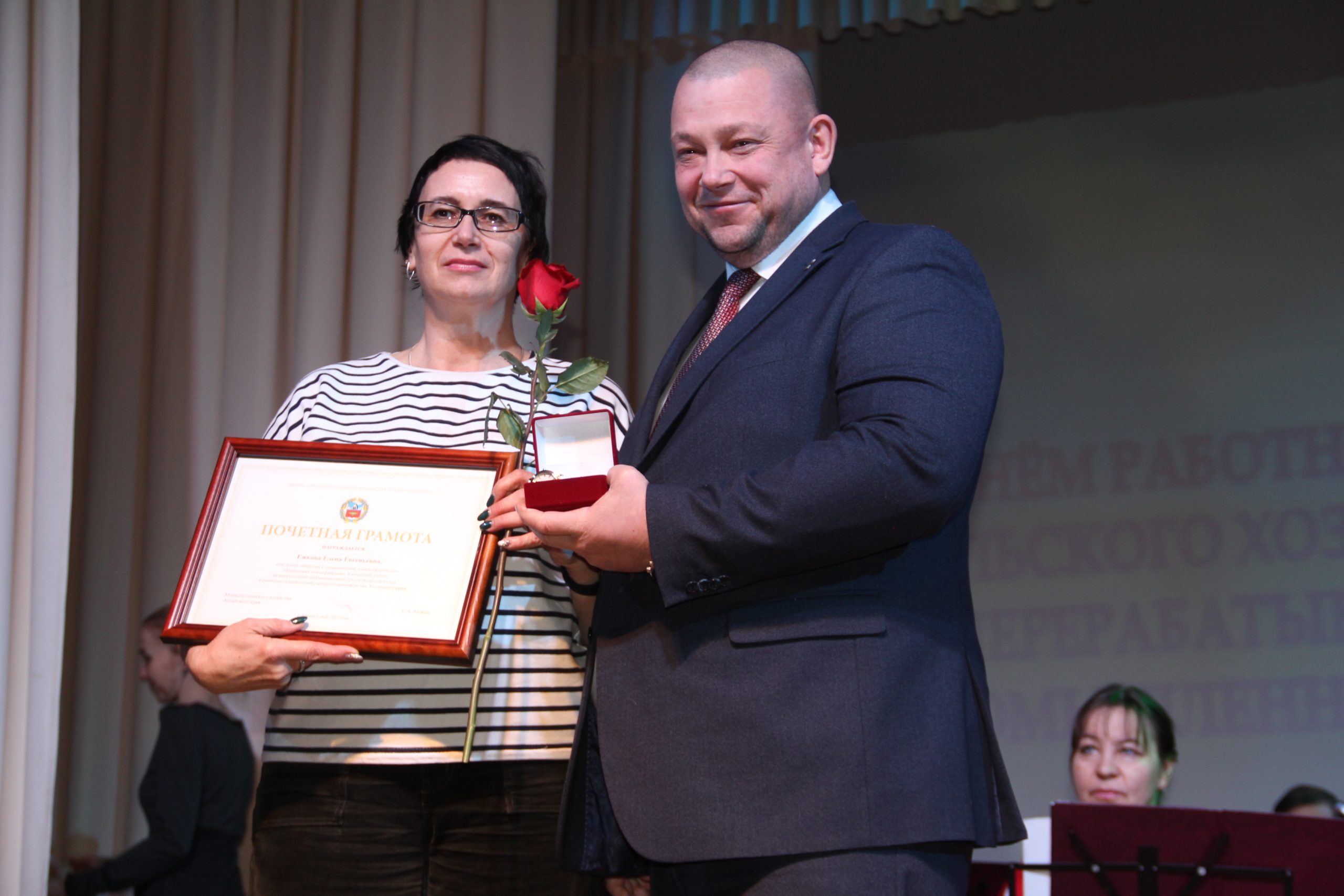Также виновников торжества поздравила Людмила Сартакова, председатель районного управления АПК. Она отметила, что сельскохозяйственные труженики трудятся круглогодично при любых условиях, днем ночью , не взирая на время суток. Она поблагодарила гостей торжественного мероприятия за любовь к малой родине и за нелегкий труд.