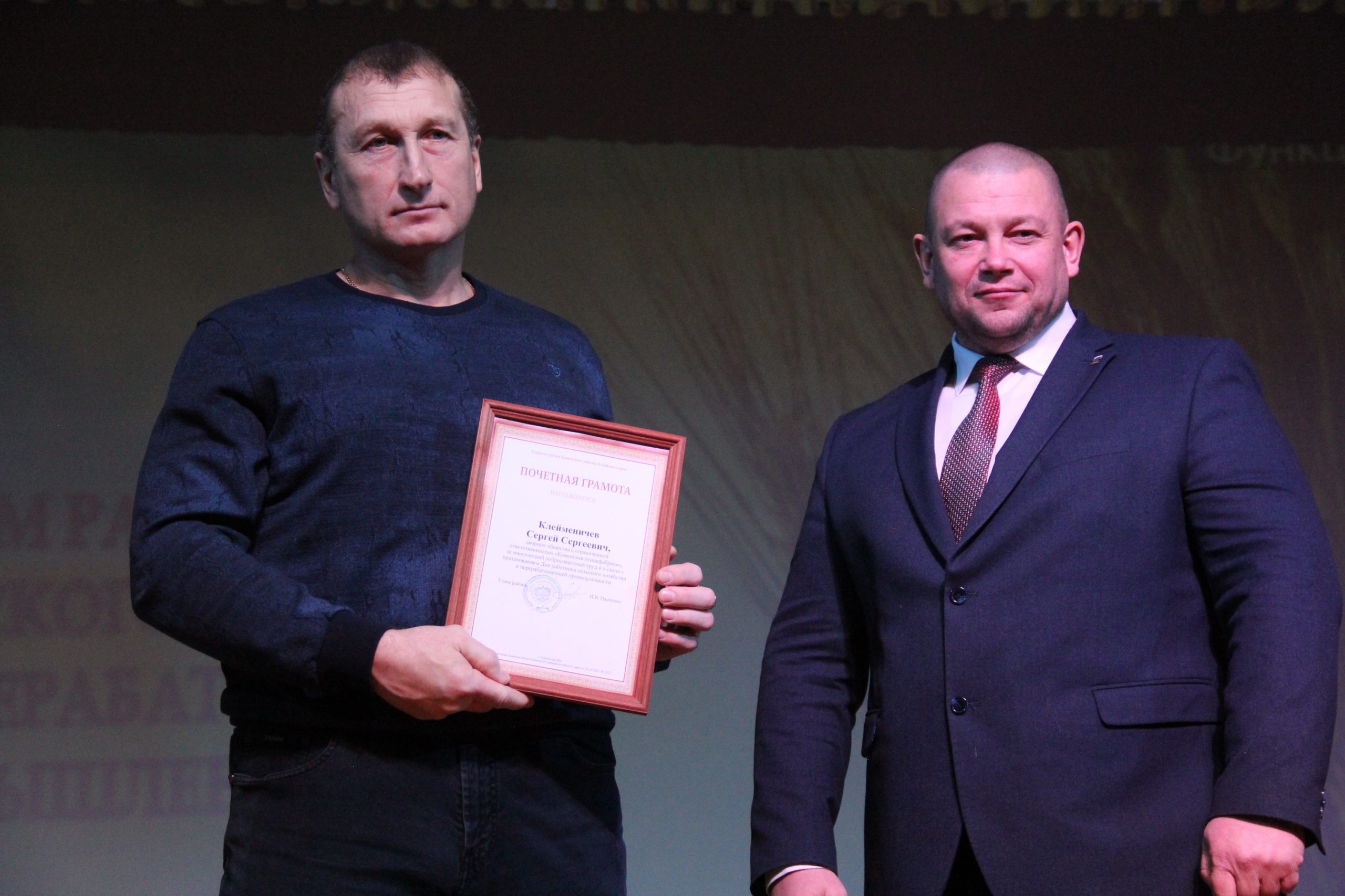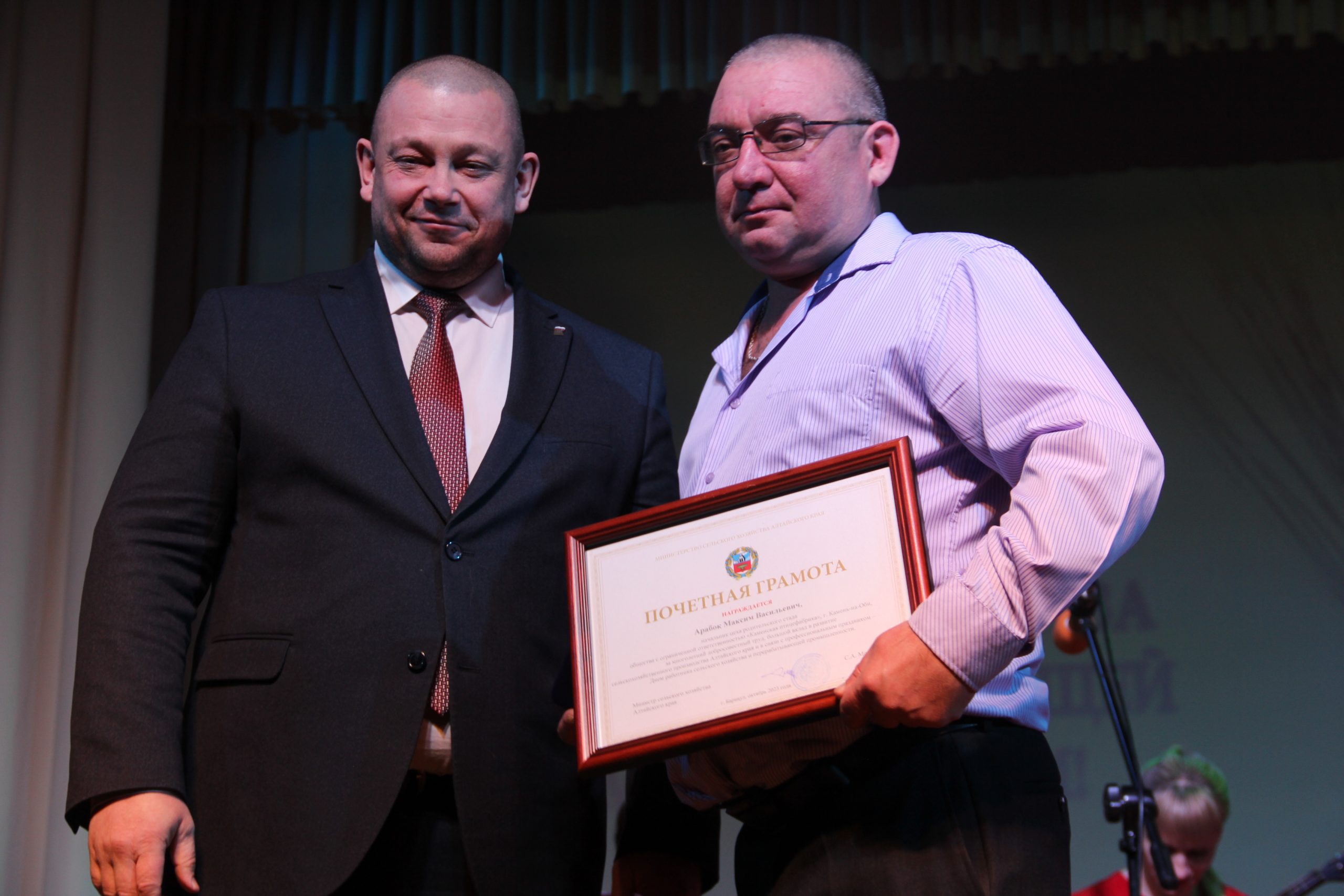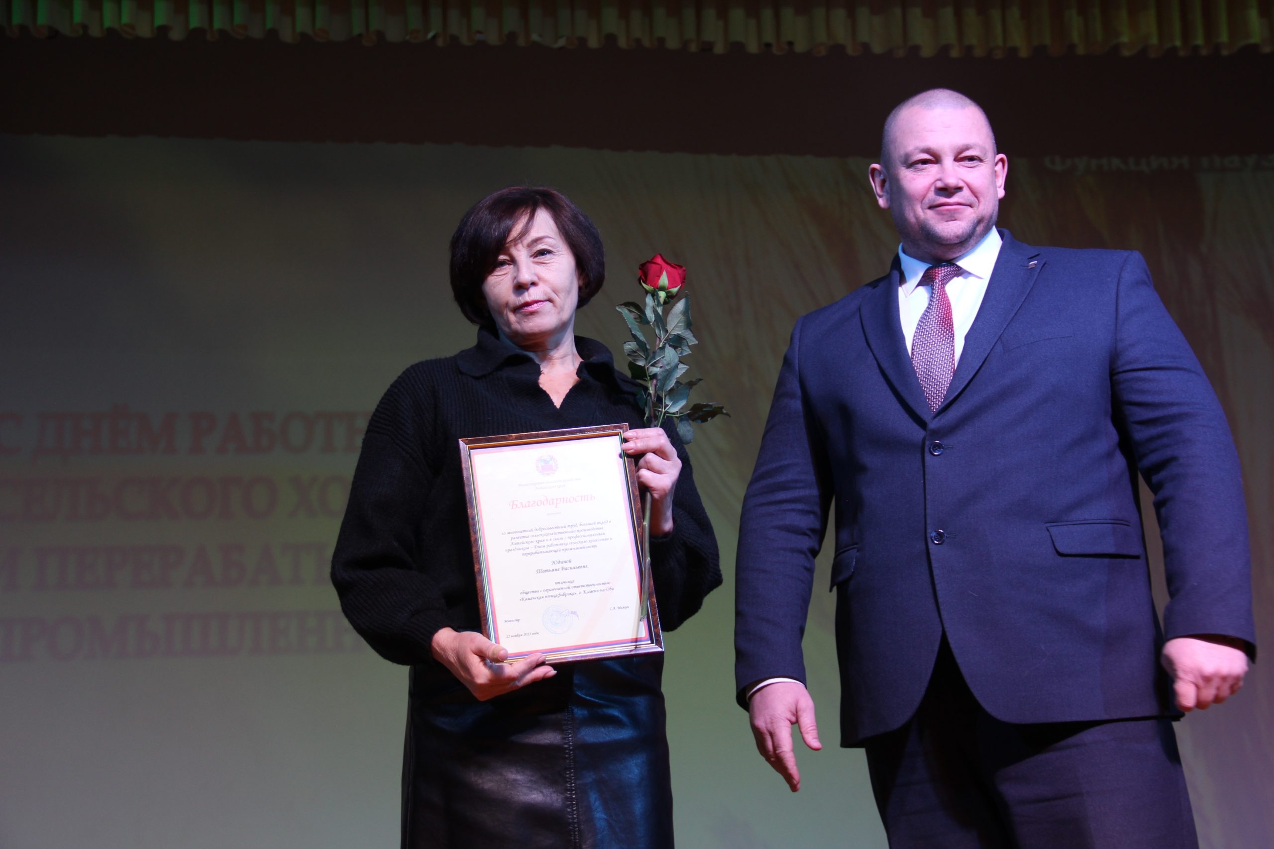 Поздравил присутствующих с профессиональным праздником Александр Коновалов, директор «Каменской птицефабрики». Он отметил, что очень приятно осознавать то, что в Алтайском крае тружеников ценят. А «Каменская птицефабрика» одно из передовых предприятий своего сегмента. На инкубационном яйце фабрики работают другие регионы Сибири, а само предприятие производит 40 000 тонн куриного мяса в год.