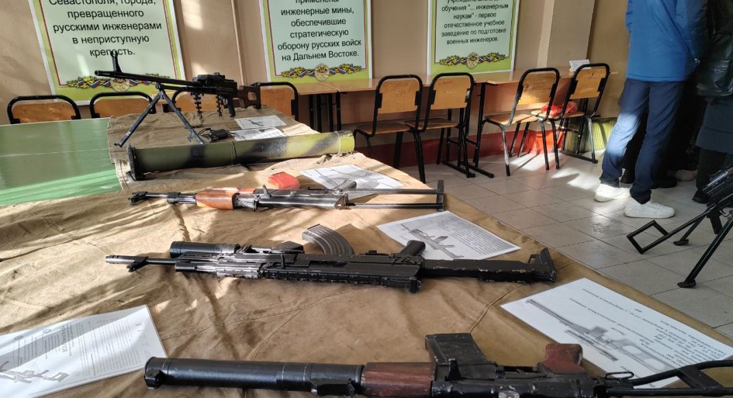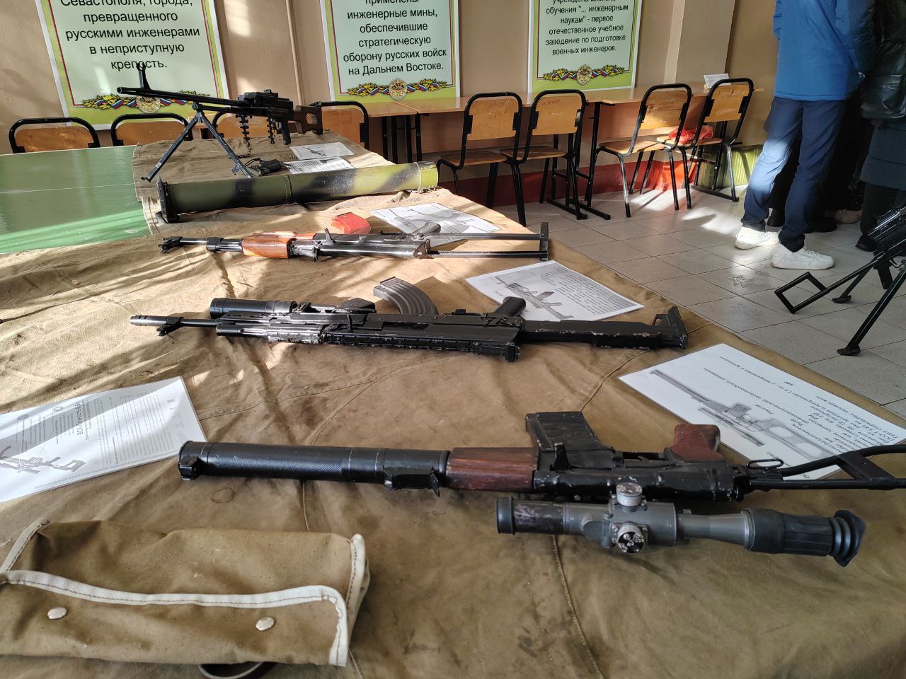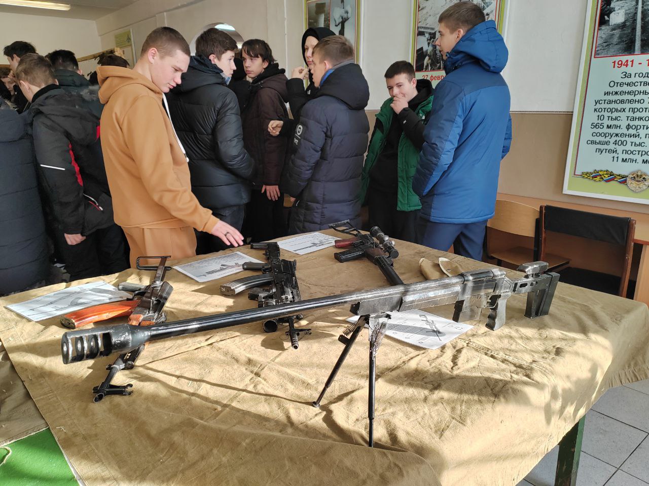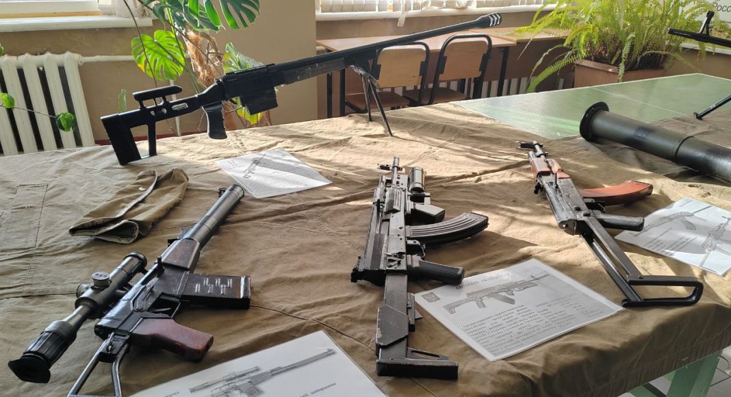 Самой, наверное, увлекательной и познавательной частью мероприятия стал показ оружия, стоявшего — и стоящего — на вооружении российской армии: от заслуженного «ветерана», легендарного АК-47, до современной версии «калаша», снайперских винтовок и даже ручного гранатомета. Само собой, это не боевое оружие, а всего лишь массогабаритные макеты, выполненные с искусной точностью. К слову, их изготовил военнослужащий части, которого уже называют «каменским Калашниковым».