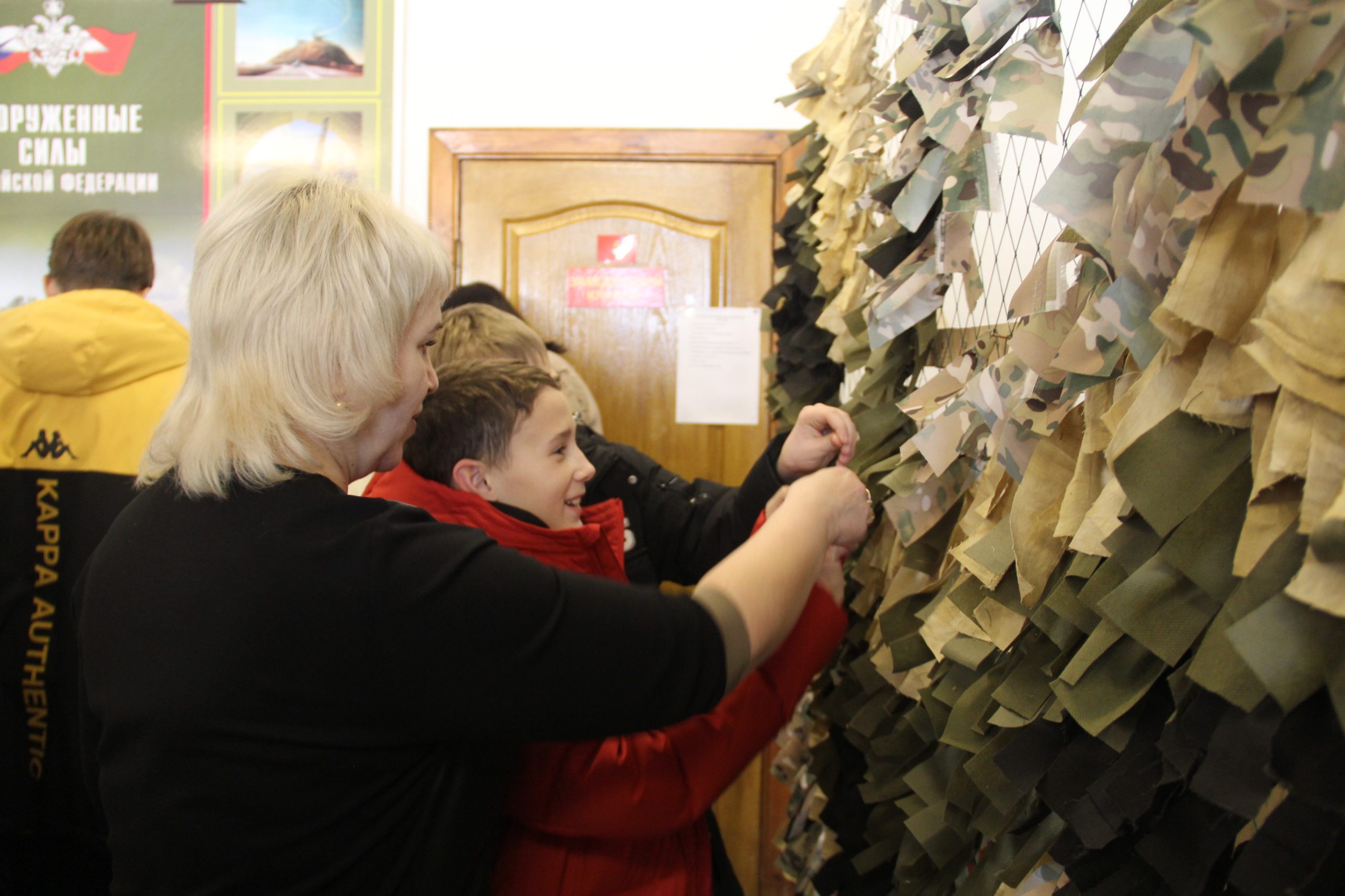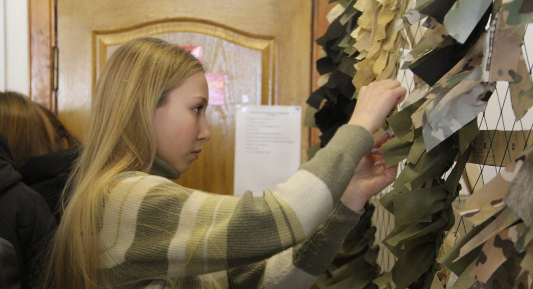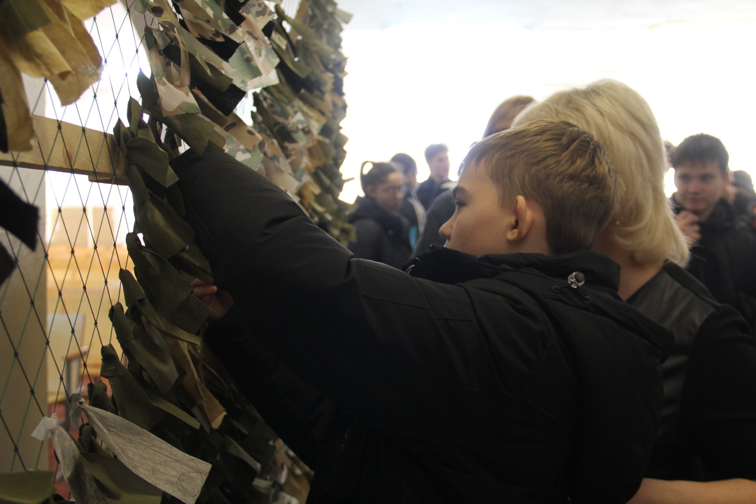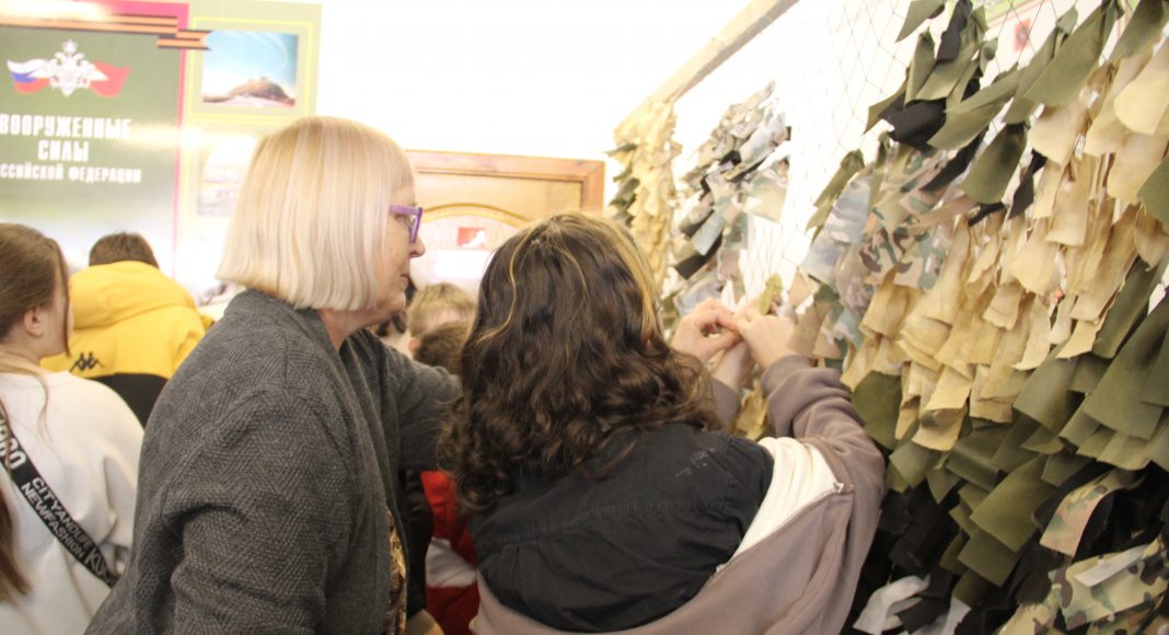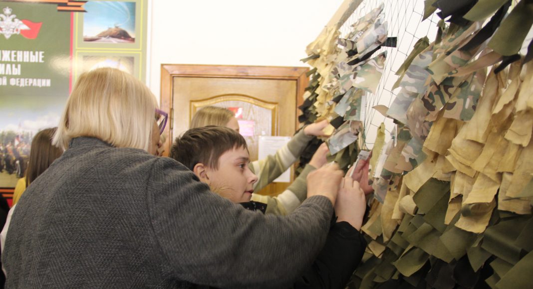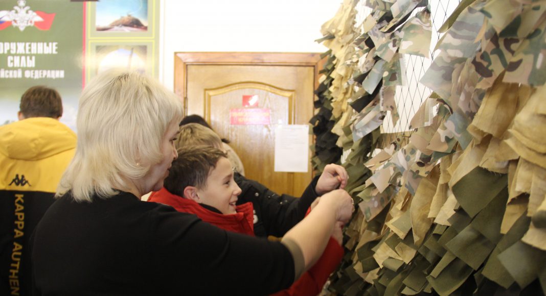 После небольшого, но увлекательного курса молодого бойца учащиеся школ внесли свою лепту в изготовление маскировочной сети, которая в числе многих в скором времени отправится в зону специальной военной операции. На элементах масксети ребята написали карандашами теплые пожелания и приветы российским бойцам.